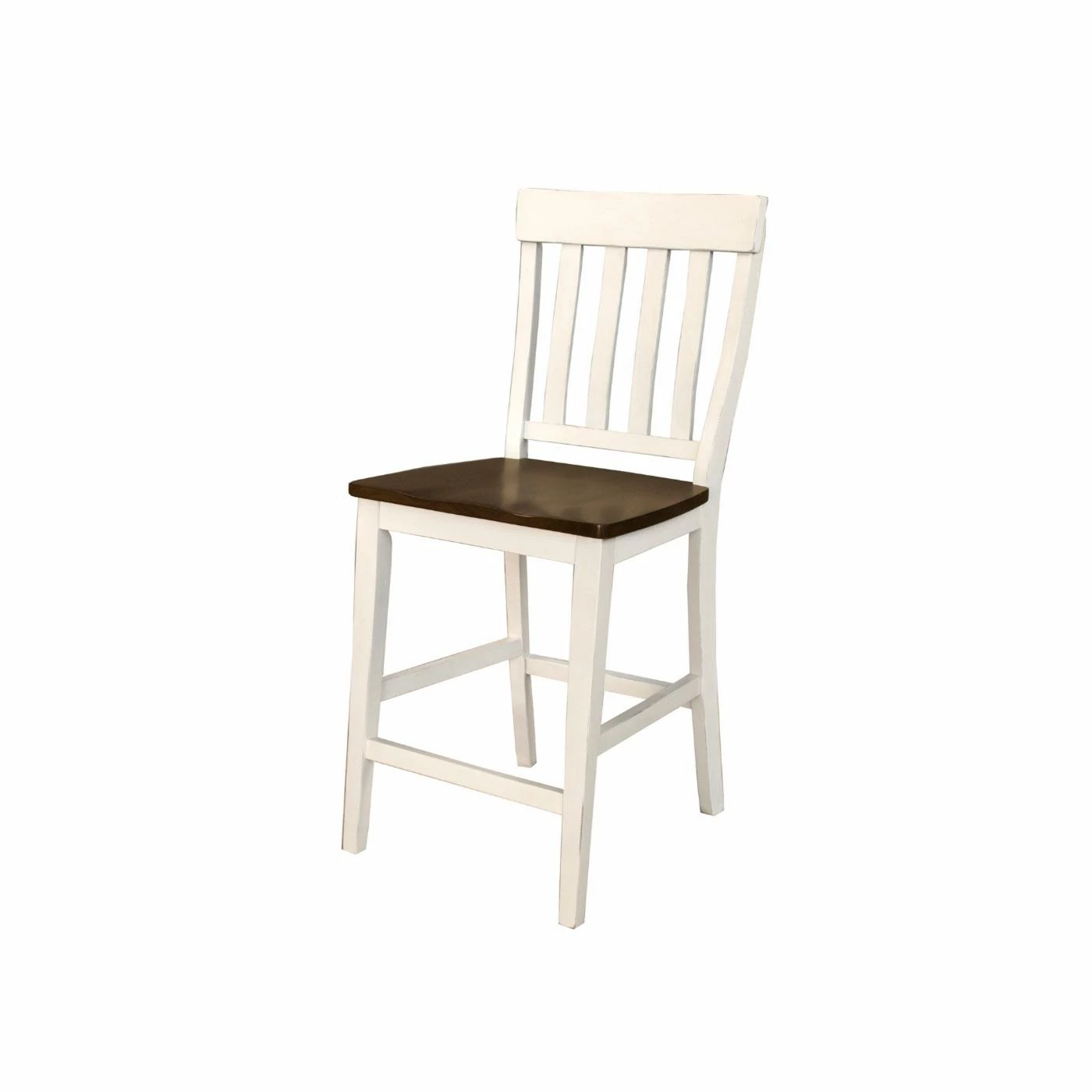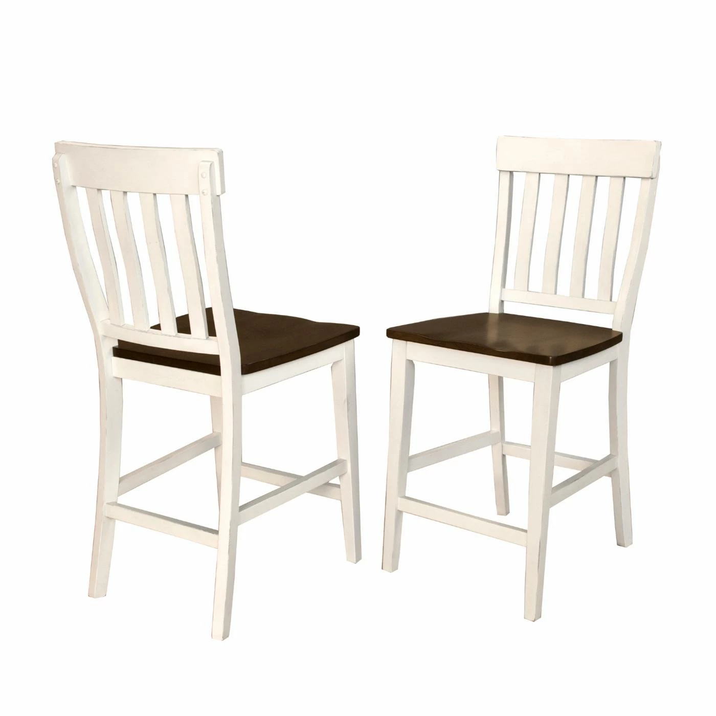 Sit back and relax in a A-America Mariposa Slatback 25.6 in. Dining Counter Stool – Set of 2. These counter stools are made from sturdy wood and carved for a more comfortable sitting experience. The white finish on the frame of these chairs nicely complements the dark natural seats for a rustic farmhouse look that’s easy to apply to more contemporary spaces, too. Traditional slats create a down-home look you’ll feel right at home in. Some assembly is required before setting up your brand new counter stools in your dining room or breakfast nook.