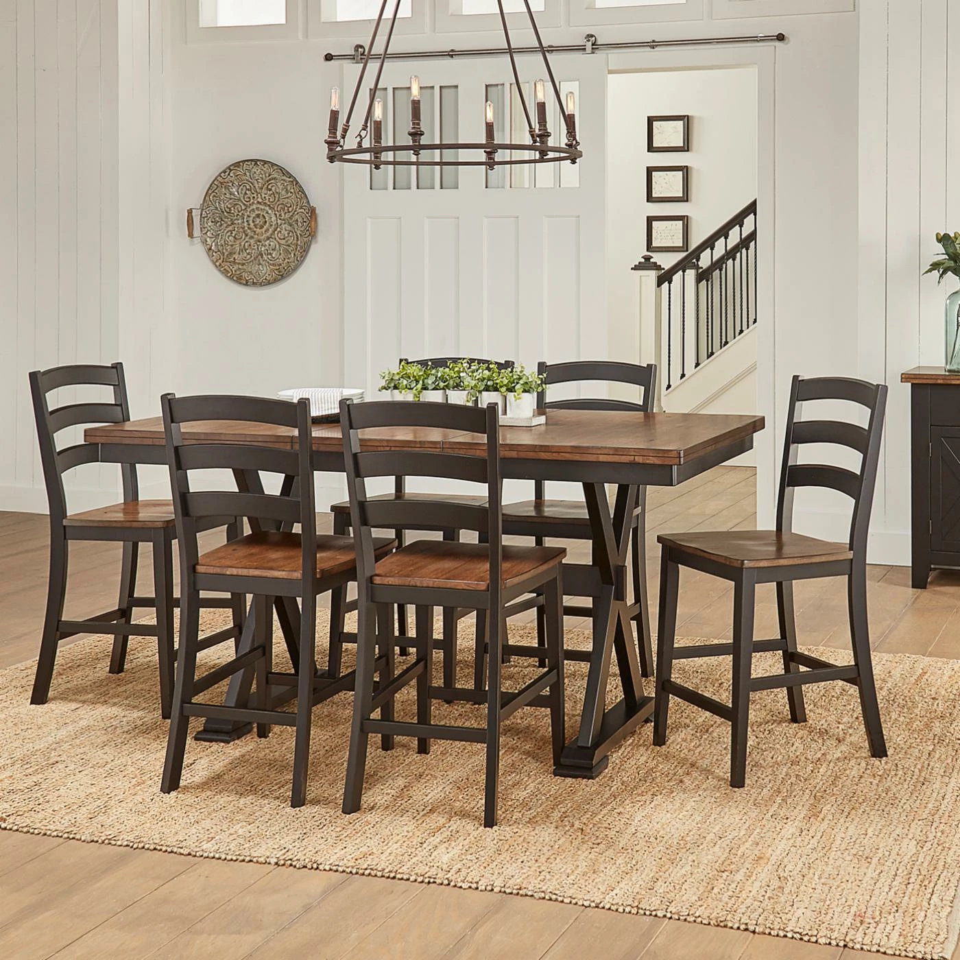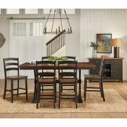 The A-America Stormy Ridge 24 in. Ladderback Counter Stool – Set of 2 invites warm hospitality to the dining room with its practical farmhouse style. Pronounced distressing in the chicory finish mimics the look of time-worn wood that is contrasted by the soft slate black paint recalling faint chalky memories of a by-gone era.