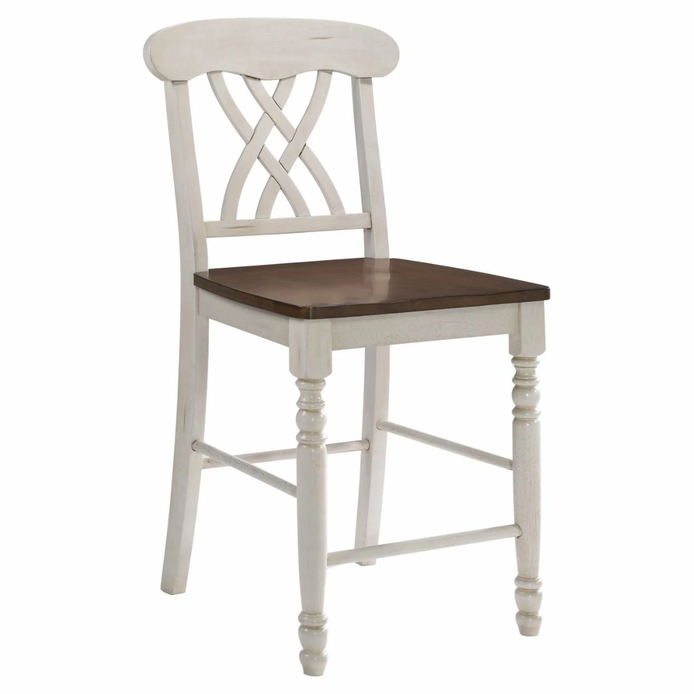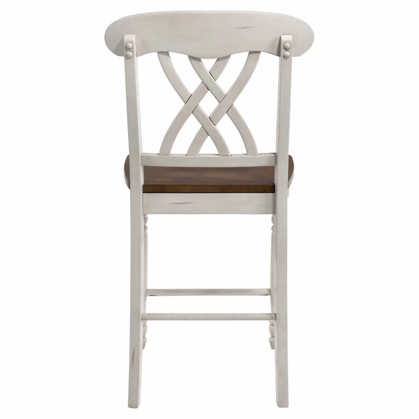 Itβs all in the details! The charming Acme Furniture Dylan Counter Height Dining Chairs – Set of 2 comes in an enchanting two-tone finish and features graceful carvings sure to give your favorite gathering space an elegant look. Each chair is made of solid rubberwood with flared back legs and turned front legs connected by stabilizing stretchers. The angled backrest flaunts an overlapping X design topped by a contoured crown that supports the shoulders. Dark oak seats are carefully scooped for added comfort.