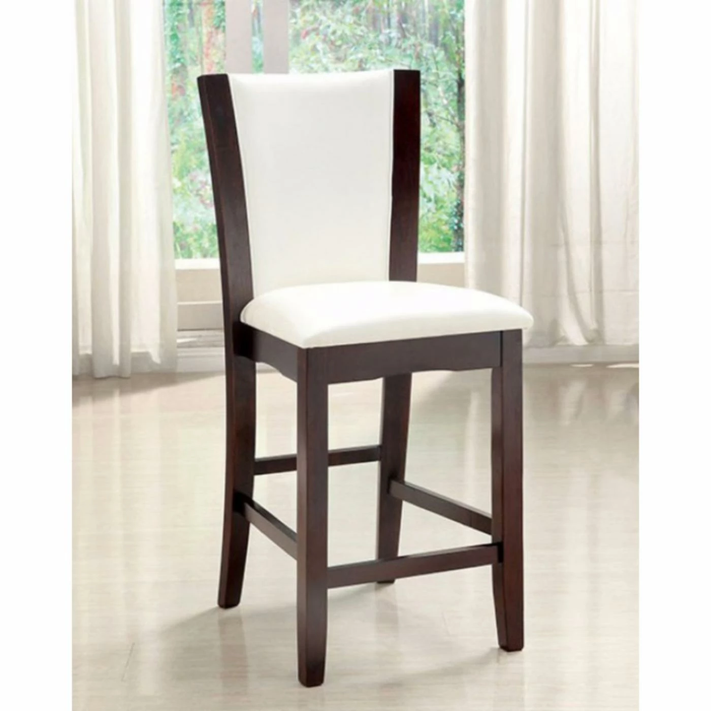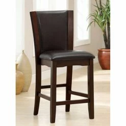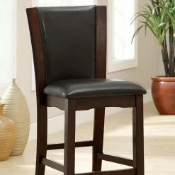 The Benzara Manhattan III Counter Height Dining Side Chair – Set of 2 accents your new dining room with a bold modern pair of counter-height chairs. Both of the chairs included in this set are built from fine, long-lasting wood solids. The curved backrests are armless and features a foam-padded center. The seats are also padded with foam. Rich leatherette fabric upholsters the chairs. Choose among the available color options to best match your room’s design.