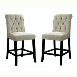 The Furniture of America Verona Contemporary Chenille Counter Height Chair – Set of 2 gives your new counter-height breakfast nook or dining table with lush traditional-style seating. Two armless, counter-height chairs are included in this set. Block rubberwood solids construct the frames, finished in dark brown. The seats feature rolled backrests and are stuffed with soft, high-density foam padding. Premium chenille fabric upholsters the seats, diamond-tufted on the backrests. Choose from available color options.