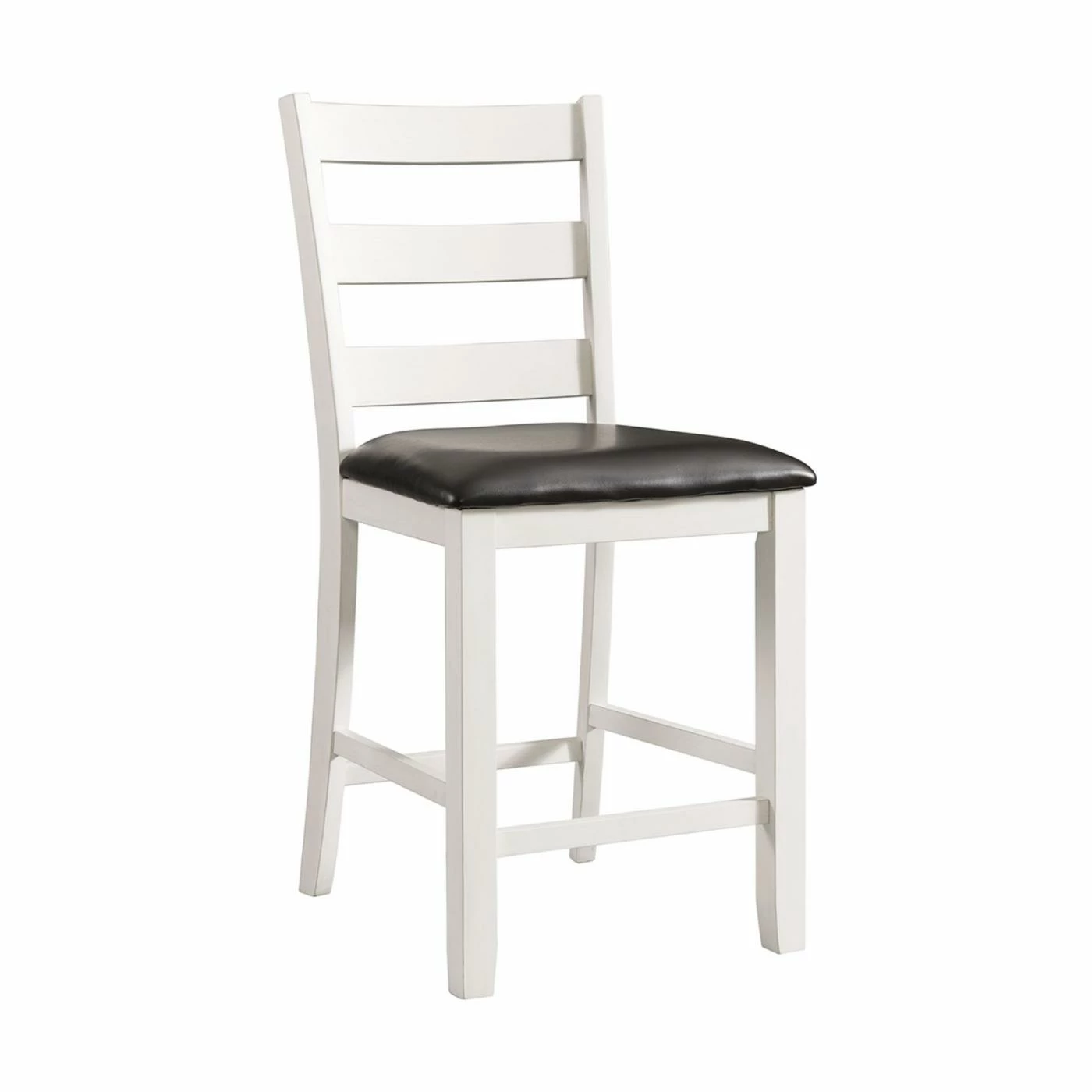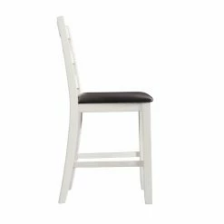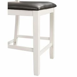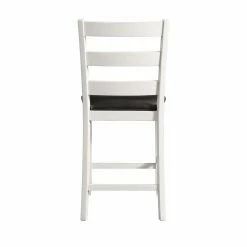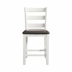 The Picket House Furnishings Kona Counter Height Ladder Back Dining Side Chair – Set of 2 are the perfect chairs for dining or entertaining. The chairs feature a ladder back design and an upholstered seat in faux leather. The wire brush, white finish on the chairs is truly unique, adding instant flair to this set. Filled with high density foam for comfortable dining. The brown upholstery contrasts well with the white and will give the updated look your dining room has been craving!