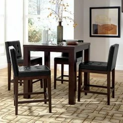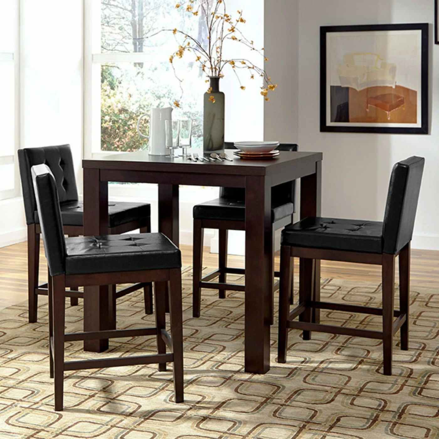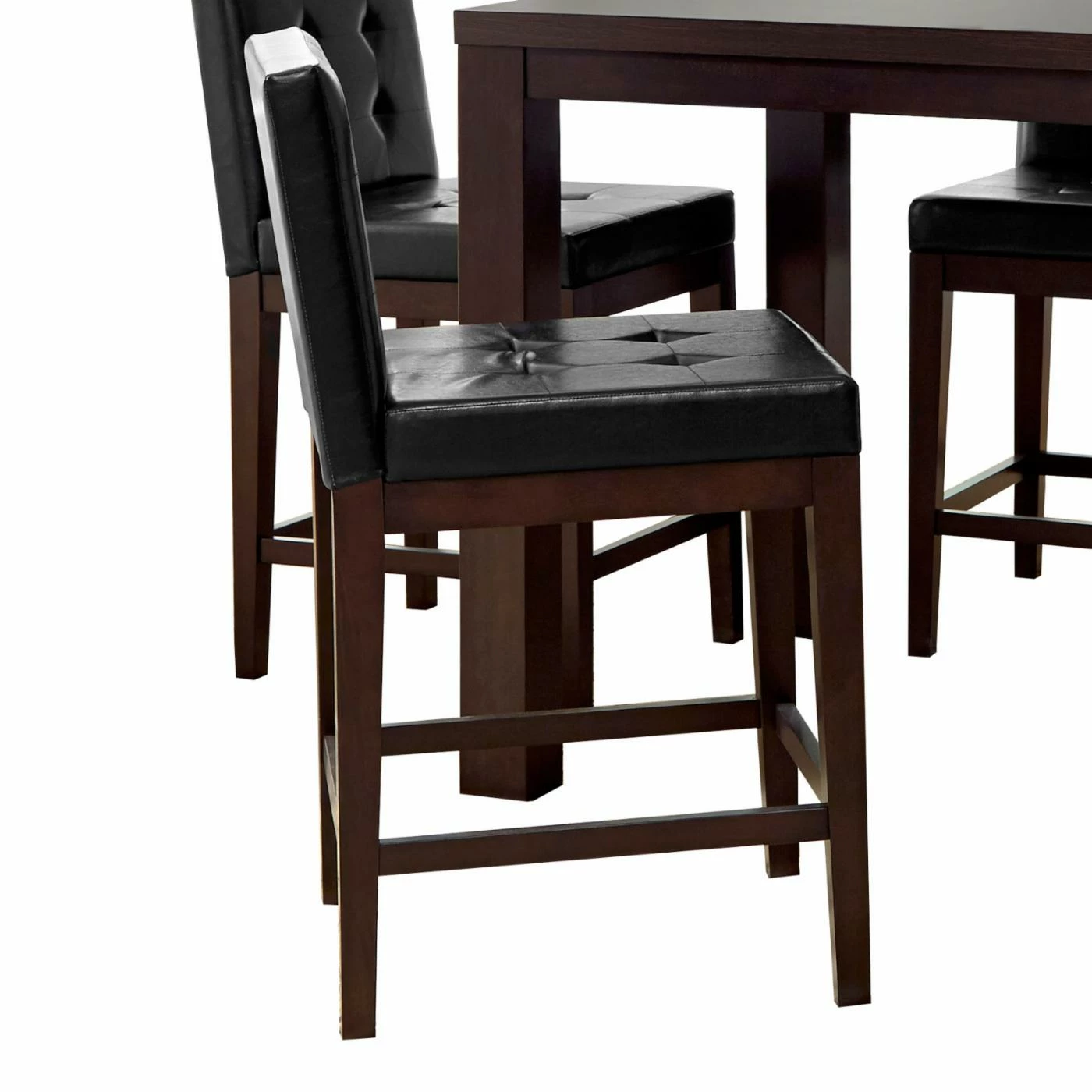 Because every dining space could use a little chic, the Progressive Furniture Athena Upholstered Counter Dining Chairs – Set of 2 features seats and backs fully upholstered in black faux leather, complete with elegant button tufting. Below, the frames are built tough out of solid rubberwood and engineered wood with birch veneers in a tasty dark chocolate finish. For the complete look, shop other items in Progressive Furniture’s Athena collection.