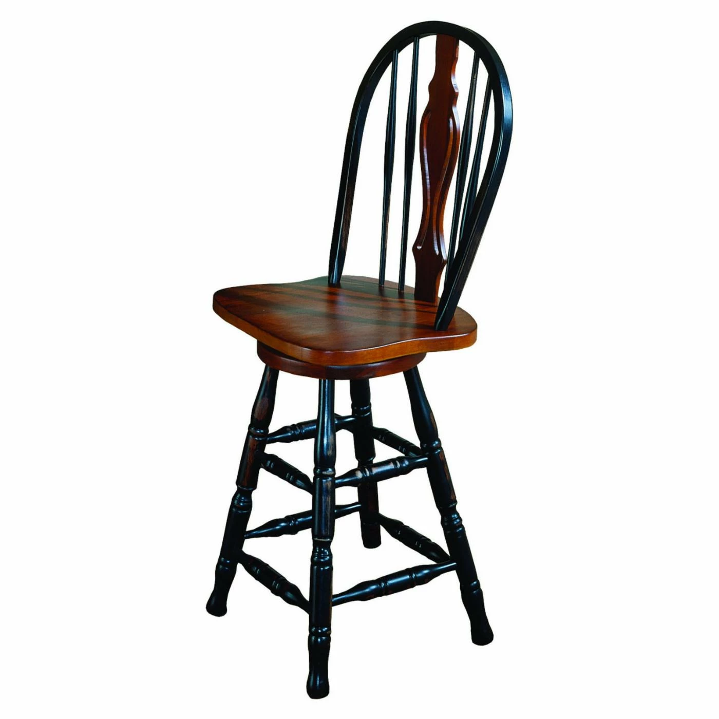 Never be lonely in the kitchen again; the Sunset Trading 24-Inch Keyhole Swivel Counter Stool is the perfect height for placing around the kitchen counter so guests can keep you company or kids can work on homework while you cook. The farmhouse charm of this stool is exemplified by the keyhole style back and classic turned legs. This fun stool also swivels for easy access and is incredibly comfortable. Steel reinforced for long-lasting stability, this hardwood stoolΒ is available in a variety of finishes to complement your home decor.