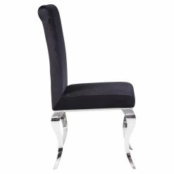 Add a glamorous touch to your dining room with the Acme Furniture Fabiola Parson Dining Side Chair – Set of 2. This elegantly designed dining chair comes as a set of two and features a stunningly elegantly design with cabriole legs. Its stainless steel frame is adorned with a silver finish. The black fabric upholstery is padded with thick foam cushioning, delivering luxurious comfort.