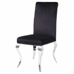 Add a glamorous touch to your dining room with the Acme Furniture Fabiola Parson Dining Side Chair – Set of 2. This elegantly designed dining chair comes as a set of two and features a stunningly elegantly design with cabriole legs. Its stainless steel frame is adorned with a silver finish. The black fabric upholstery is padded with thick foam cushioning, delivering luxurious comfort.