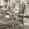 With magnificent carvings and button-tufted upholstery, the Acme Furniture Vendome Tufted Dining Arm Chair – Set of 2 deserves a place at the ends of your Rococo table. Tracing influences from Louis XVI’s celebrated interior design styles as well as the ornate early Chippendale pieces, this pair of dining arm chairs features hand-applied gold leaf accents. Nailhead trim anchors supple faux leather upholstery that’s easy to clean.