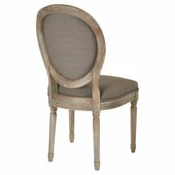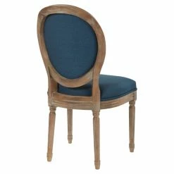 The Ave Six Lillian Oval Back Dining Chair brings old world style to your dining room. This chair rests on a durable rubberwood frame and features padding in the seat and back. The smooth fabric upholstery is offered in your choice of available color.