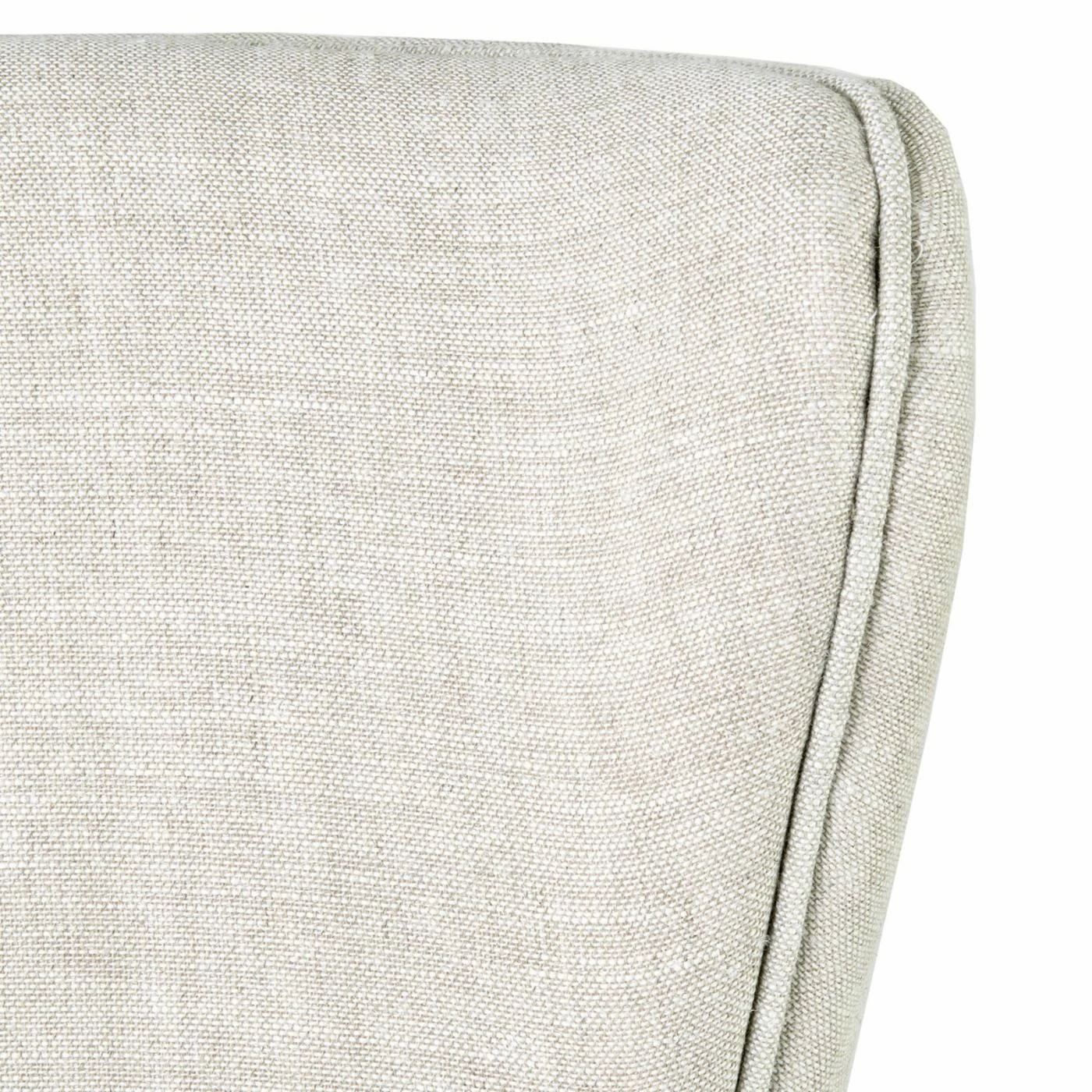 - Upholstered in beige fabric