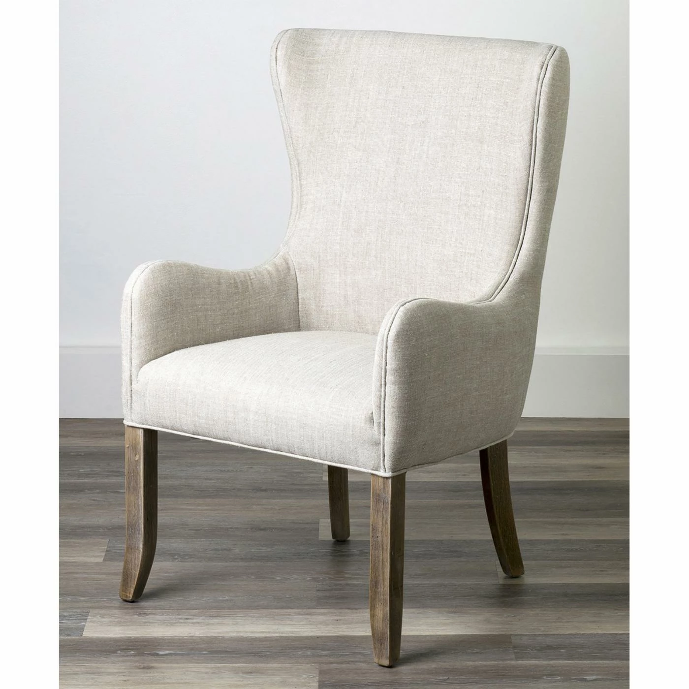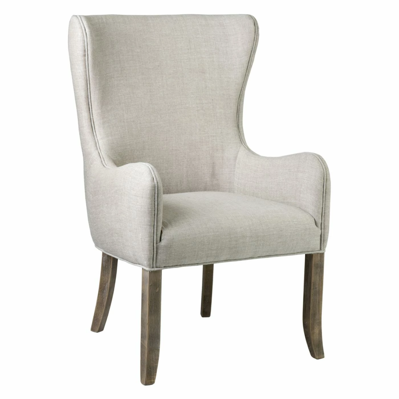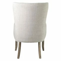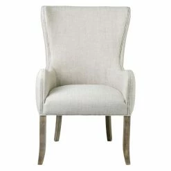 Featuring a wingback design that leads into gently curving armrests, the East At Main Anne Upholstered Wingback Dining Chair adds a transitional touch to your dining set. Crafted from oak, the frame is finished in a natural brown hue that compliments the beige upholstery. With a seat height of 18 inches, this chair fits comfortably at most standard dining tables.