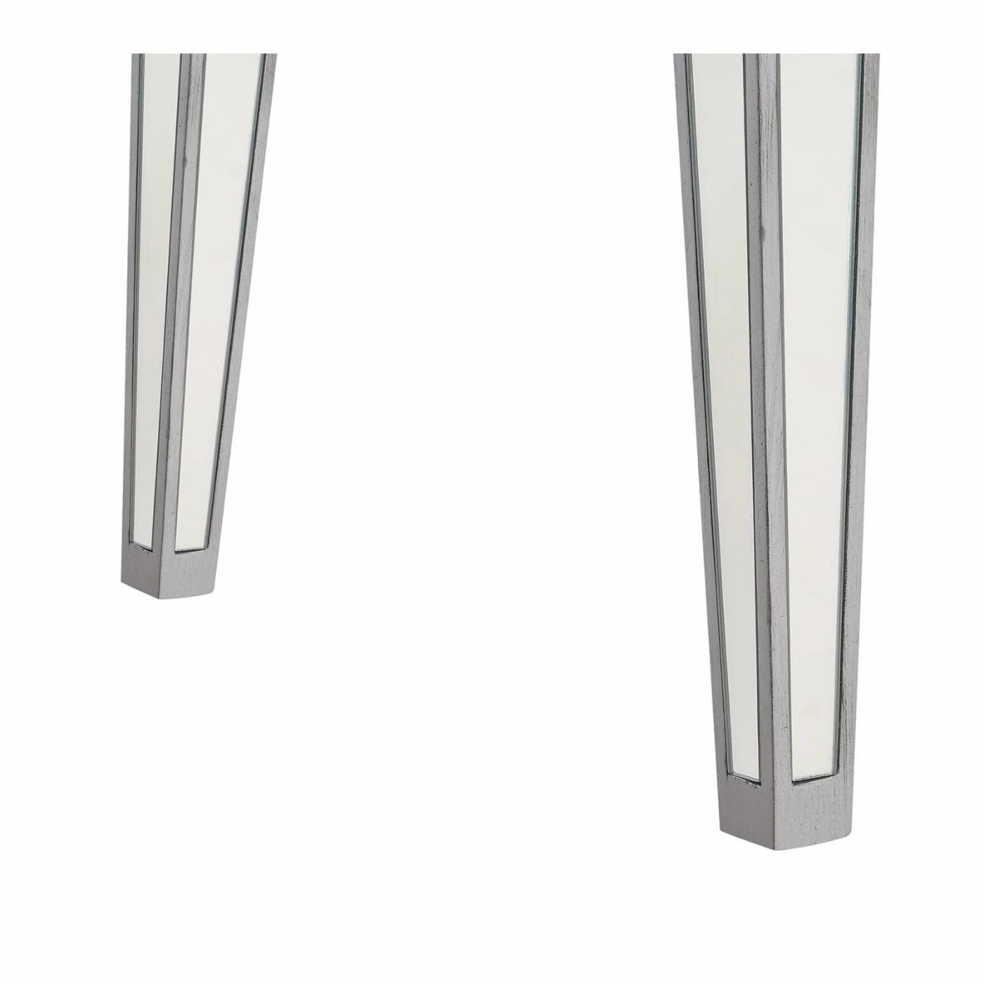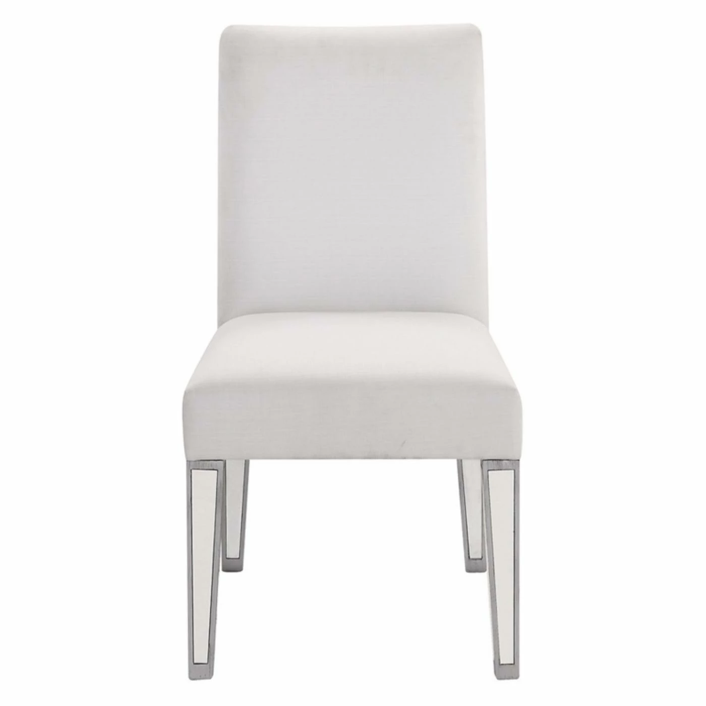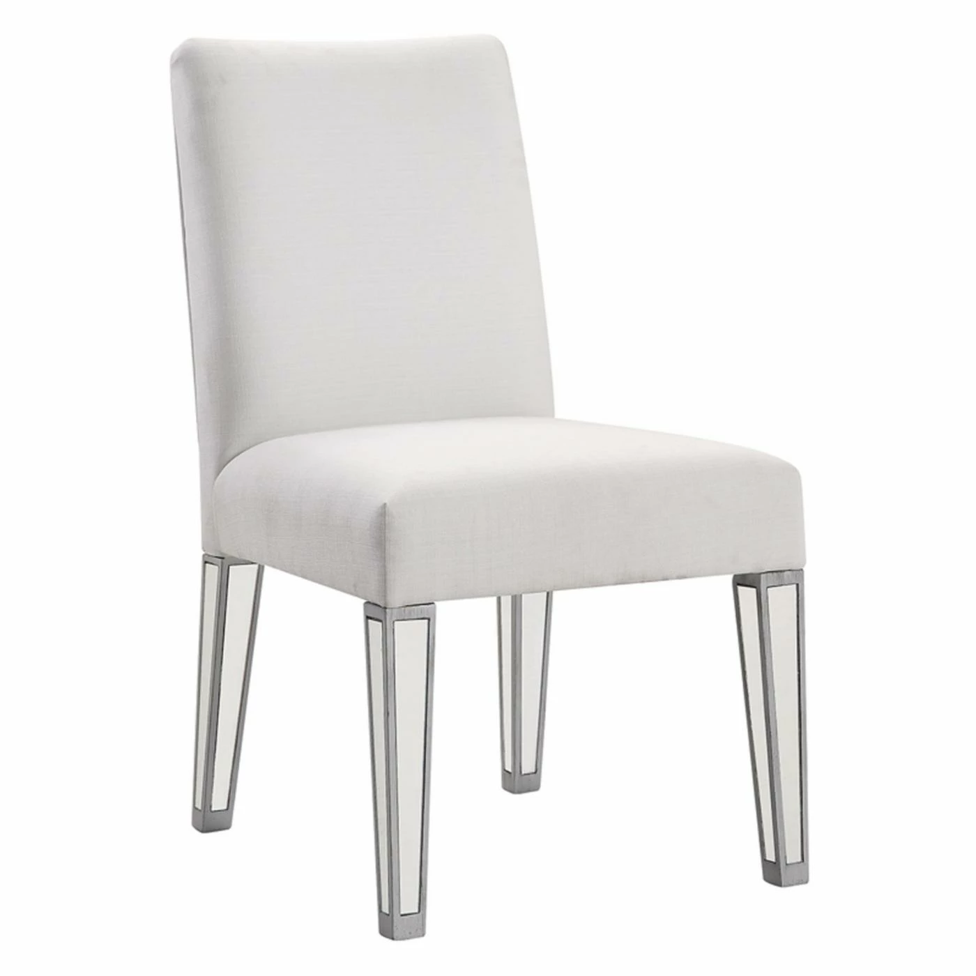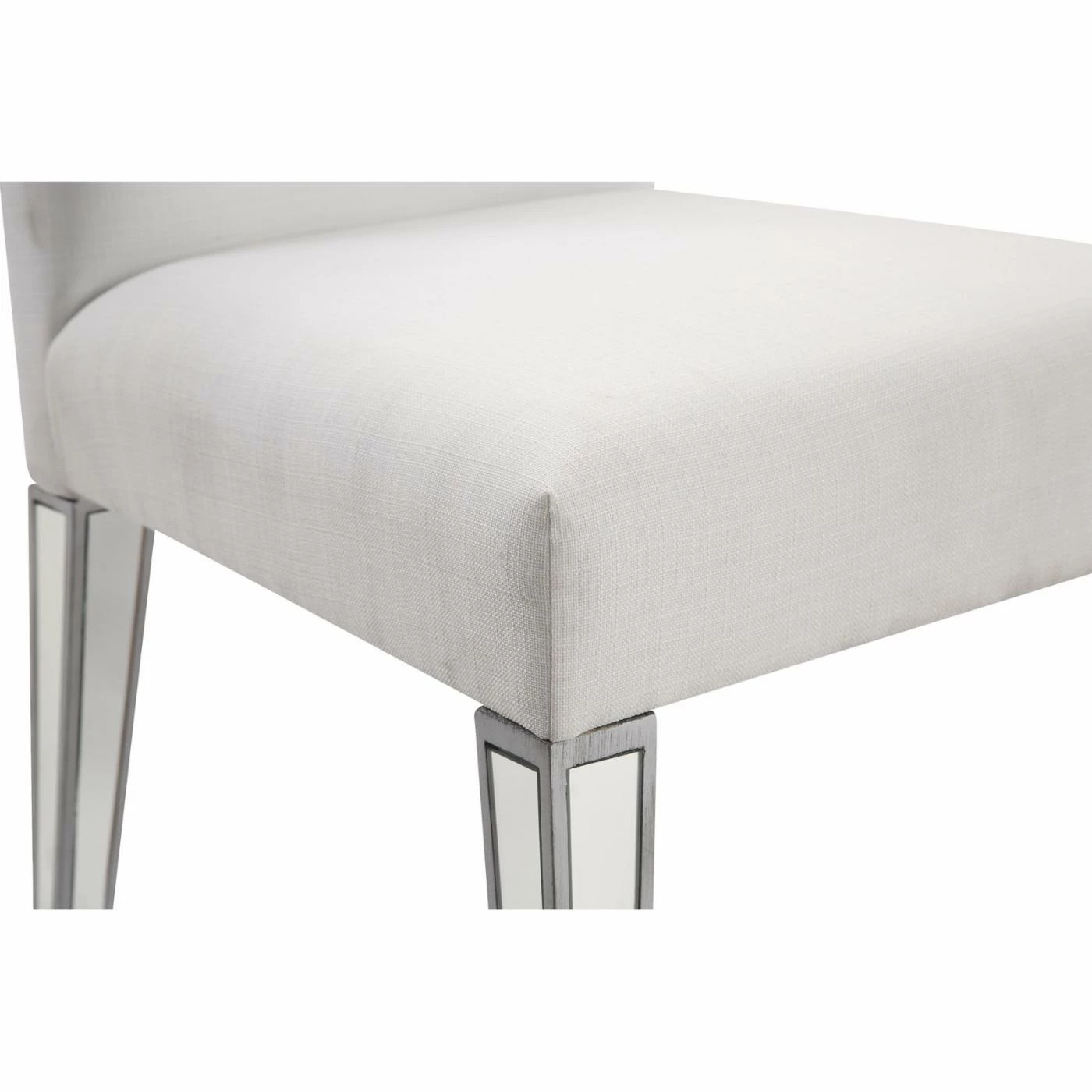 Complete your posh dining set with the Elegant Decor Dining Chair. Combining classic and modern designs, this dining chair fits most dΓ©cor styles. It boasts a solid wood frame upholstered in velvety soft fabric with a cushioned seat and back rest. Mirrored panels decorate the legs to cast a bit of sparkle at the floor.