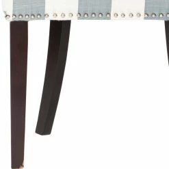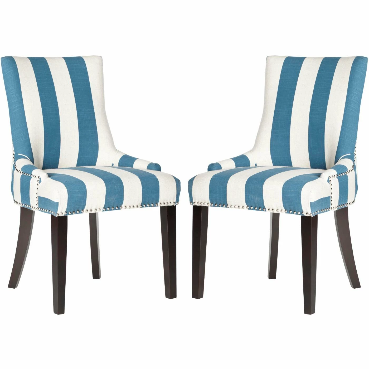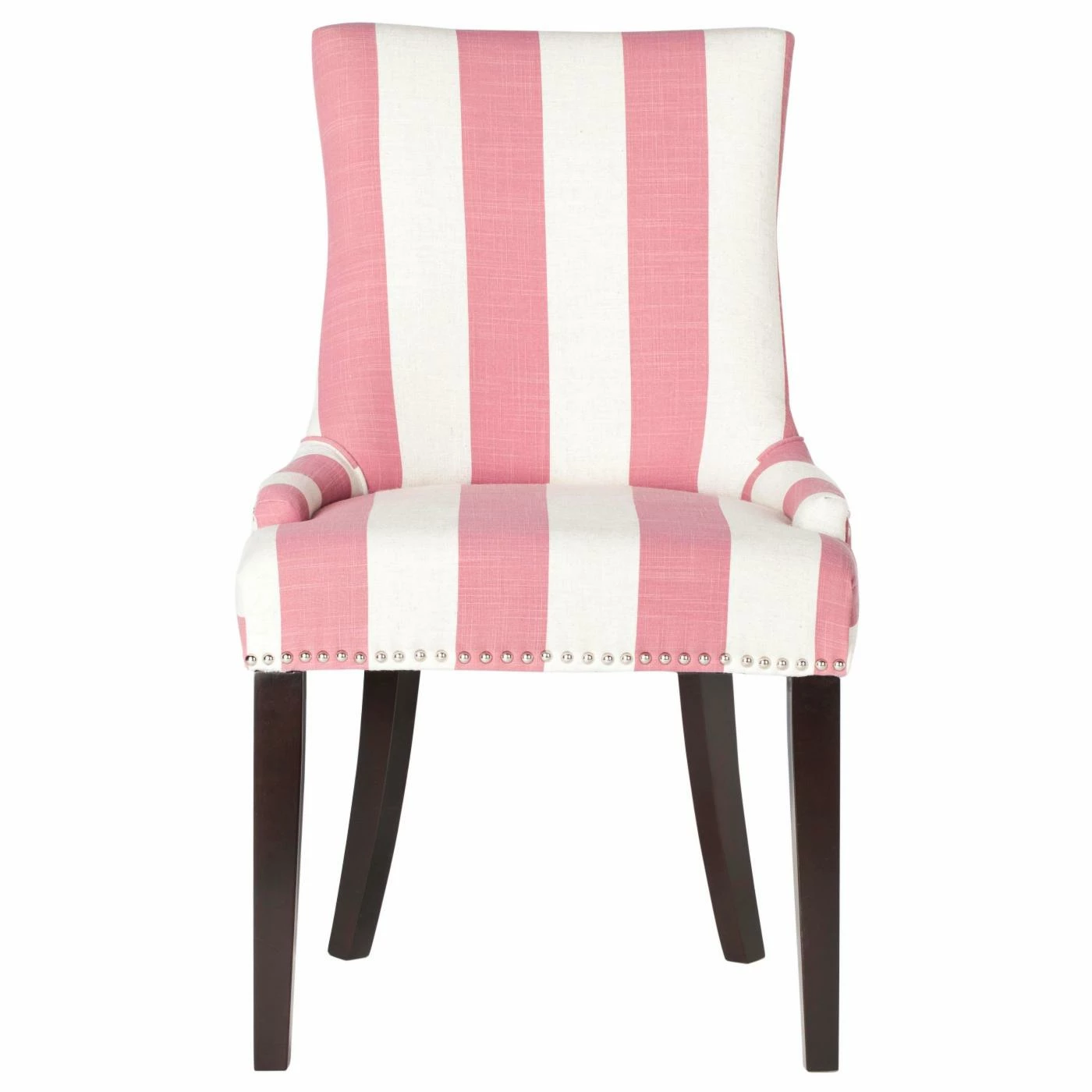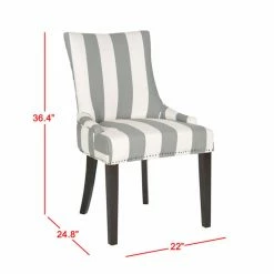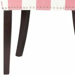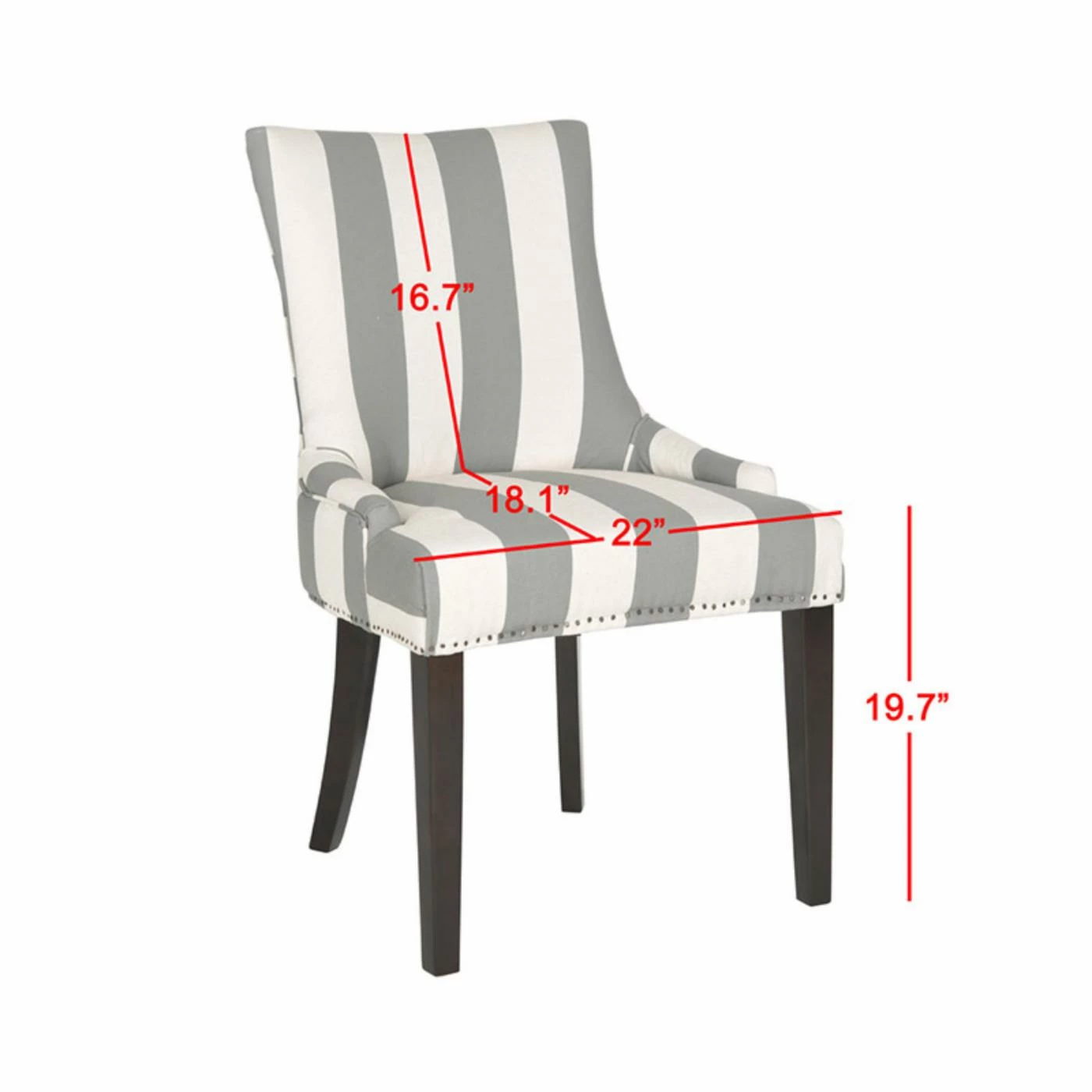 Add a burst of color and a touch of the unexpected to your dΓ©cor with the HN Home Bridgeport Transitional Awning Stripes Dining Chair with Silver Nail Heads – Set of 2. With striped upholstery in your choice of available color, you’ll love how this chair blends bold style with easy elegance. Nailhead trim adds the perfect layer of sophistication and shows off the hourglass curve of the chair. The low sloping arms and curve of the birchwood espresso-finished legs give it modern appeal.