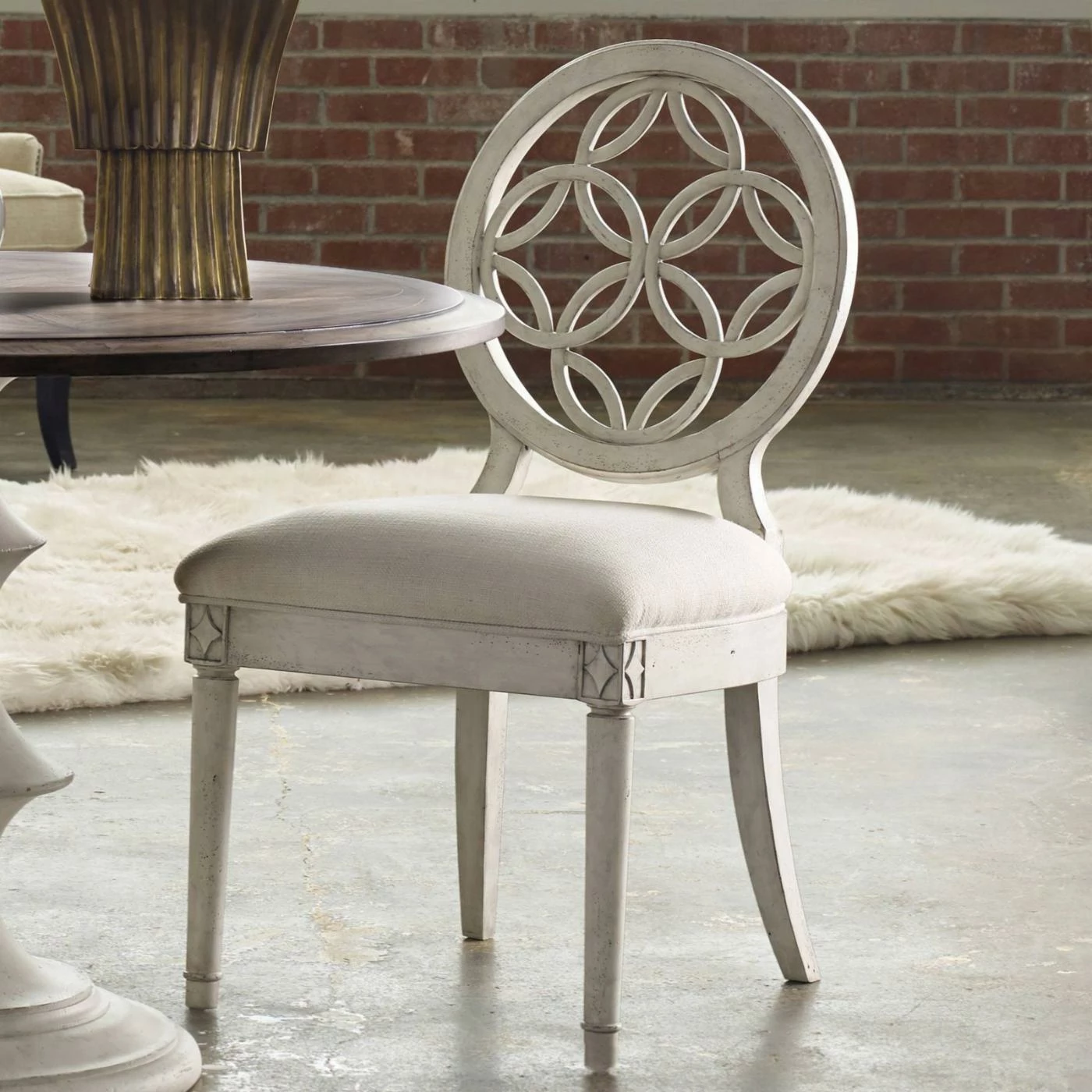 The Hooker Furniture Brynlee Side Chair – Set of 2 deserve their seat at the table. Made from solid hardwoods and select veneers, these dining chairs are a testament to the quality craftsmanship of Hooker construction. The creamy white finish is accomplished through a 30-step, exhaustive process that yields lasting wear and tear, while the durable hardwood and veneer frame ensure heirloom quality. Complete with a supple fabric seat in white, an intricately carved seatback, and no arms for extra spacious seating. Assembly required.