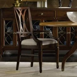 For classic tables or modern ensembles, the Hooker Furniture Palisade Splat Back Arm Chair – Set of 2 are the perfect transitional pieces for your dining room. Crafted from quality hardwoods and veneers, finished in a deep walnut, and complete with a plush, beige seat, these dining chairs are the hallmark of Hooker construction and style. Mix and match this dining chair with other pieces from our Palisade Collection. Assembly required.