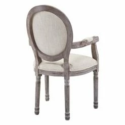 Reminiscent of 18th century French design, the Modway Emanate Vintage French Upholstered Fabric Dining Armchair is replete with country elegance and vintage charm. Its fluted rubberwood frame features a weathered finish that’s handsomely accented by the welted polyester upholstery. A rounded back and dense foam padding add to the comfort and style of the chair, giving you a timeless piece you’ll love. Select from the available finishes to find the perfect look for your home.
