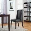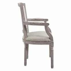 Inspired by the styles of Louis XVI, the Modway Penchant Vintage French Upholstered Dining Armchair adds vintage French beauty to your dining room. Its fluted rubberwood frame features a weathered finish accented by stunning detailing on the arms and legs. The polyester upholstery, in your choice of available colors, is densely padded for comfort and accented by antique copper nailhead trim. Foot pads ensure your floors are protected from scratches and snags. Choose from the available quantities to fit your dining needs.