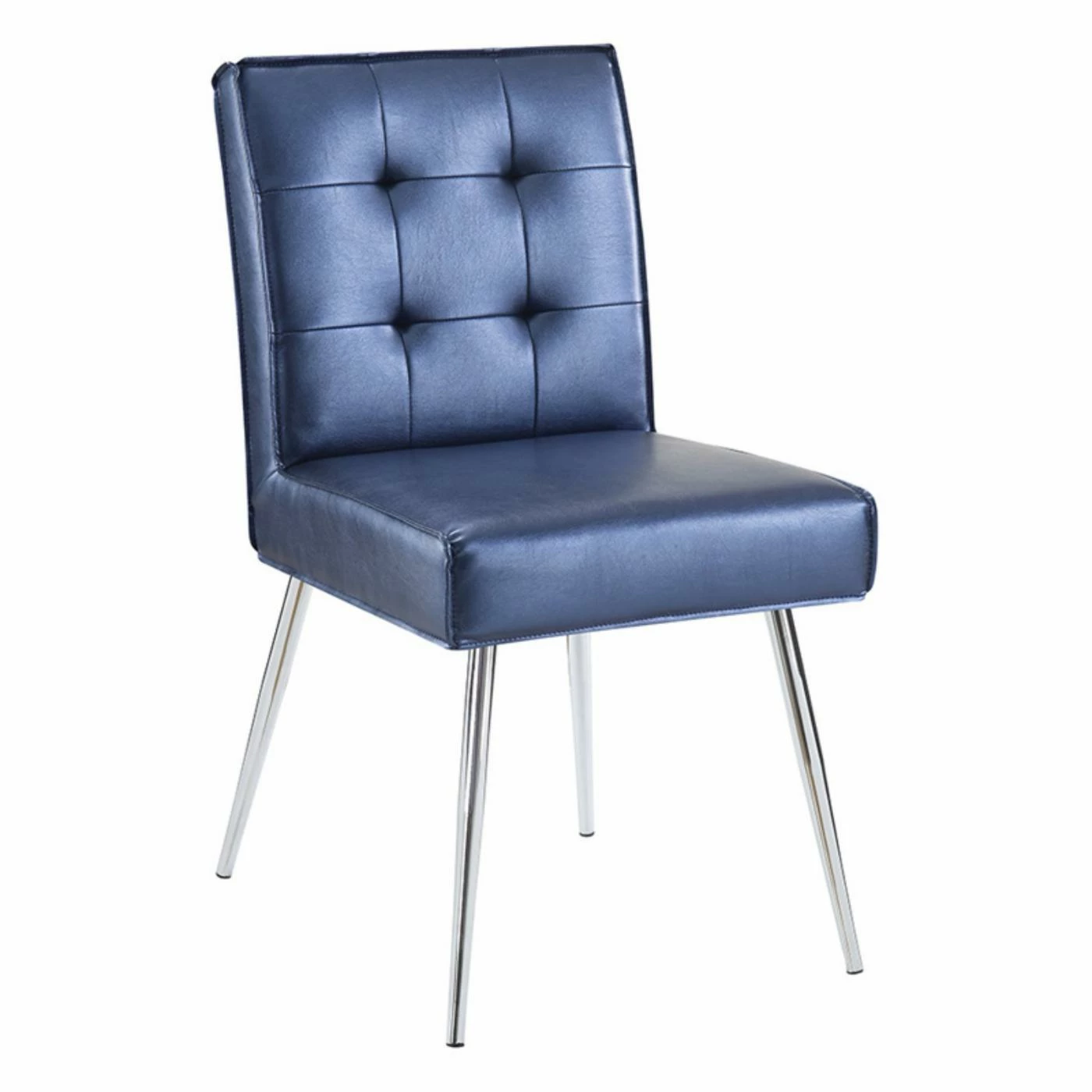 Add a fun and fresh look to your retro décor with the OSP Home Furnishings Amity Dining Chair. It features mid-century styling which includes animal-friendly upholstery and chrome-finished legs. The tufted back and piping details are the finishing touches which give the Amity chair an authentic look and make it the ideal addition to your home.