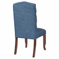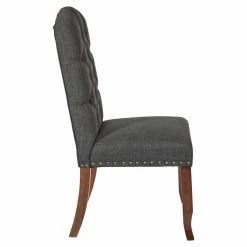 The OSP Home Furnishings Jessica Tufted Dining Chair brings sharp design to your dining space. It rests on a solid wood and engineered wood frame with smooth fabric upholstery. Button tufting along the back gives a tailored look while the nailhead detail adds edge. This dining chair is also offered in your choice of available color.