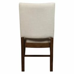 Enjoy a classical seating option for your formal dining room with the Riverside Furniture Hawthorne Dining Chair. This dining chair boasts an oval-shaped backrest and a tapered legs. The frame is rendered from durable hardwood solids and comes finished in an alluring barnwood brown. High-density foam stuffs the back and seat. Bold beige polyester upholstery completes the look, trimmed with nailhead studs.