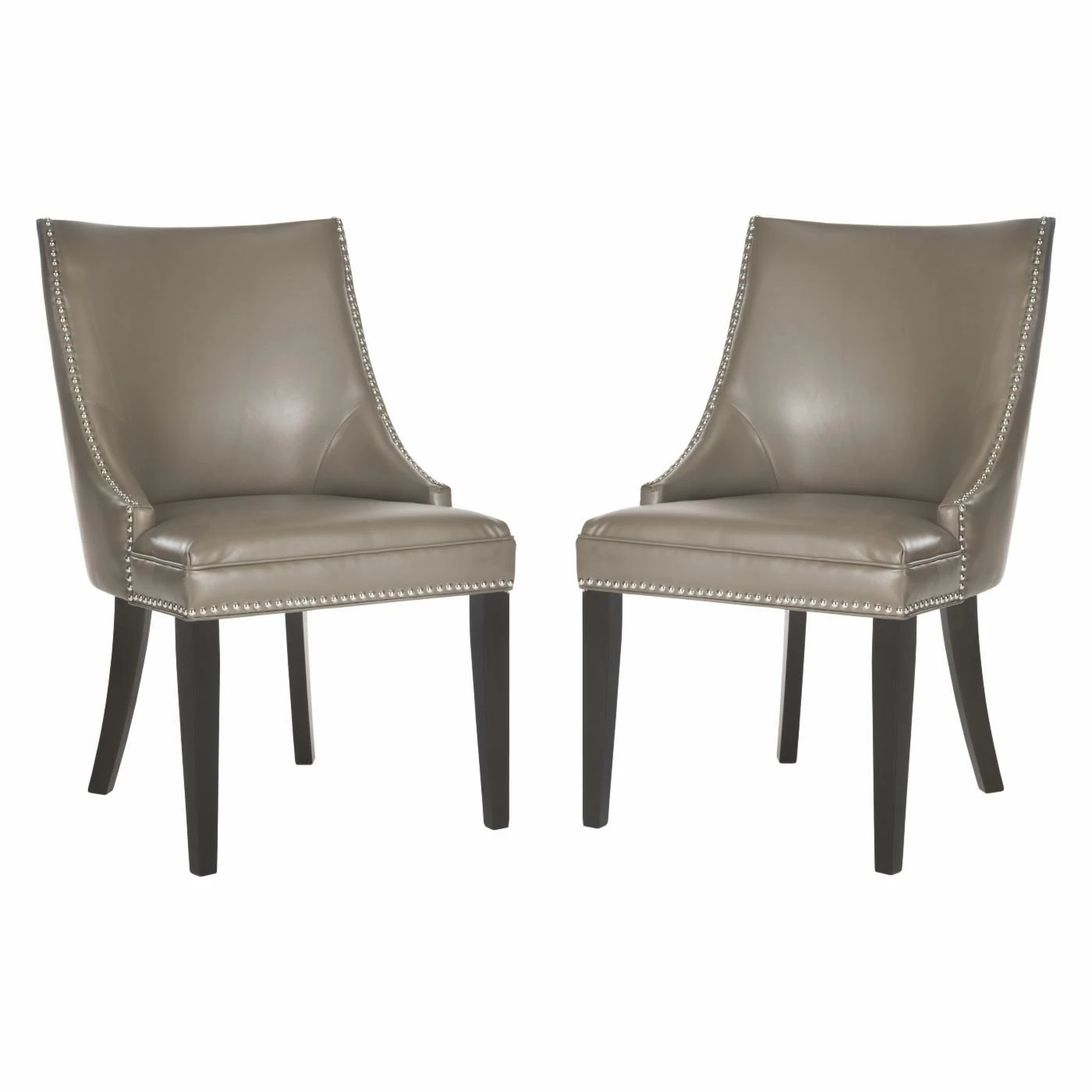 Mid-century design meets modern luxury in the Safavieh Afton Faux Leather Side Dining Chairs – Set of 2. Upholstered in sleek, bi-cast leather in your choice of color and finished in silver nailhead trim, this chair can be used in any room of your home to create a look that is elegant and refined. The birchwood legs are finished in espresso, so they’ll easily complement any décor while the birchwood frame ensures this chair will last for years to come.