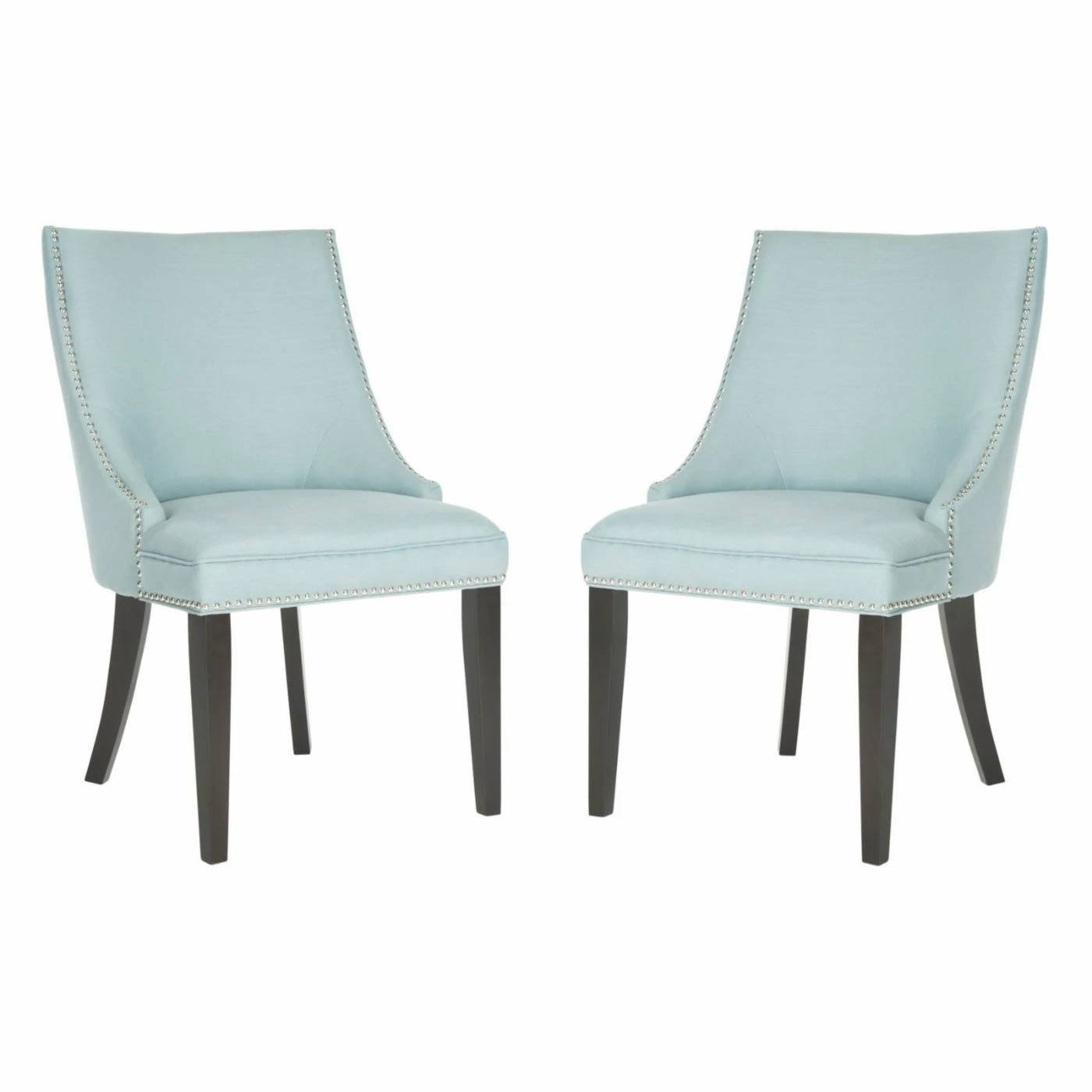 Get the look of a custom-made chair without the price with the Safavieh Afton Side Dining Chairs – Set of 2. Its sloping back and barely-there arms give this chair a graceful air that instantly upgrades any space. The cotton linen blend upholstery comes in your choice of color, so you’ll have no trouble choosing a look you love while the espresso-finished birchwood legs and frame not only provide a sturdy place to sit, but also add to its modern style. Silver nailhead trim around the edges makes this chair perfect for formal and informal settings.