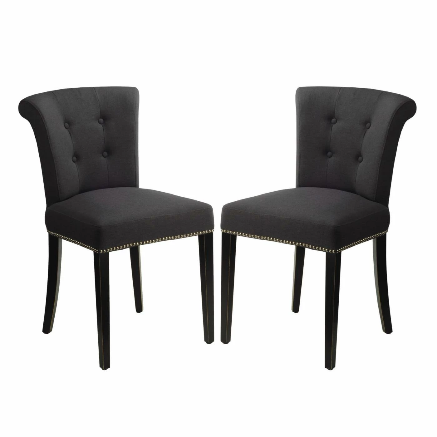 The refined look of the Safavieh Arion Ring Gray Dining Side Chairs – Smoke Gray – Set of 2 make an elegant statement whether you prefer a traditional or more modern look. The smoke gray upholstery coordinates beautifully with any style. Details like button tufting and nail head accents give a perfectly polished feeling to your space.