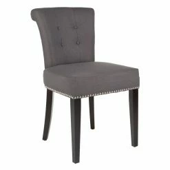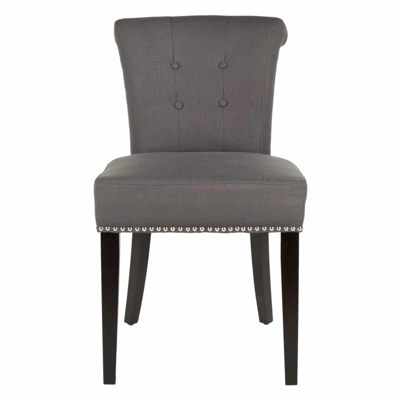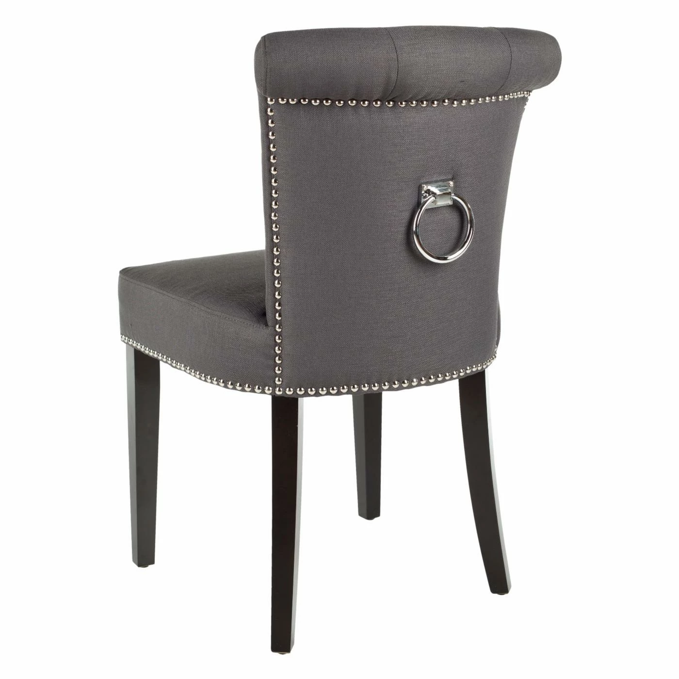The Safavieh Ellie Ring Dining Chairs – Gray – Set of 2 is a timeless piece, beautifully crafted with graceful curves. This set of two is constructed of solid birch wood in an espresso finish with a grey polyester fabric seat. Its individual nickel nail trim and a decorative nickel handle are sure to match any decor. A deep seat and concave curved back make this one of the most comfortable chairs around.