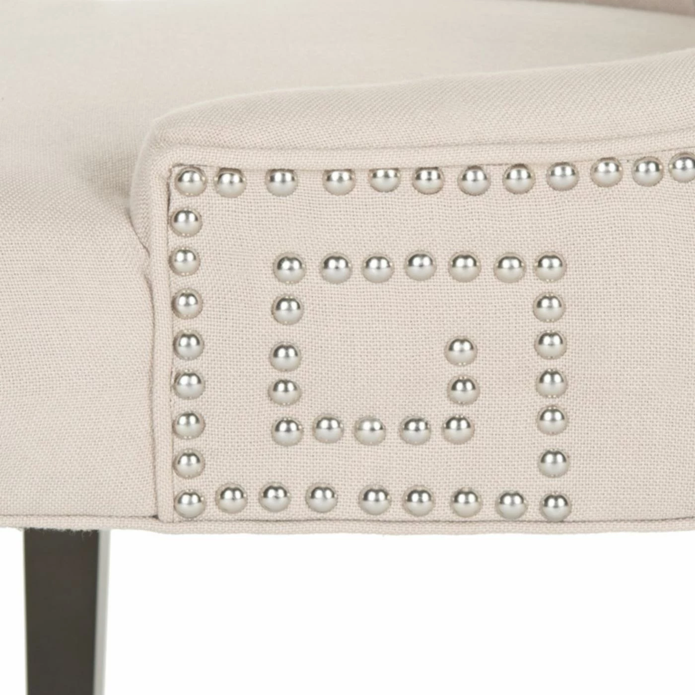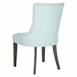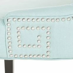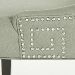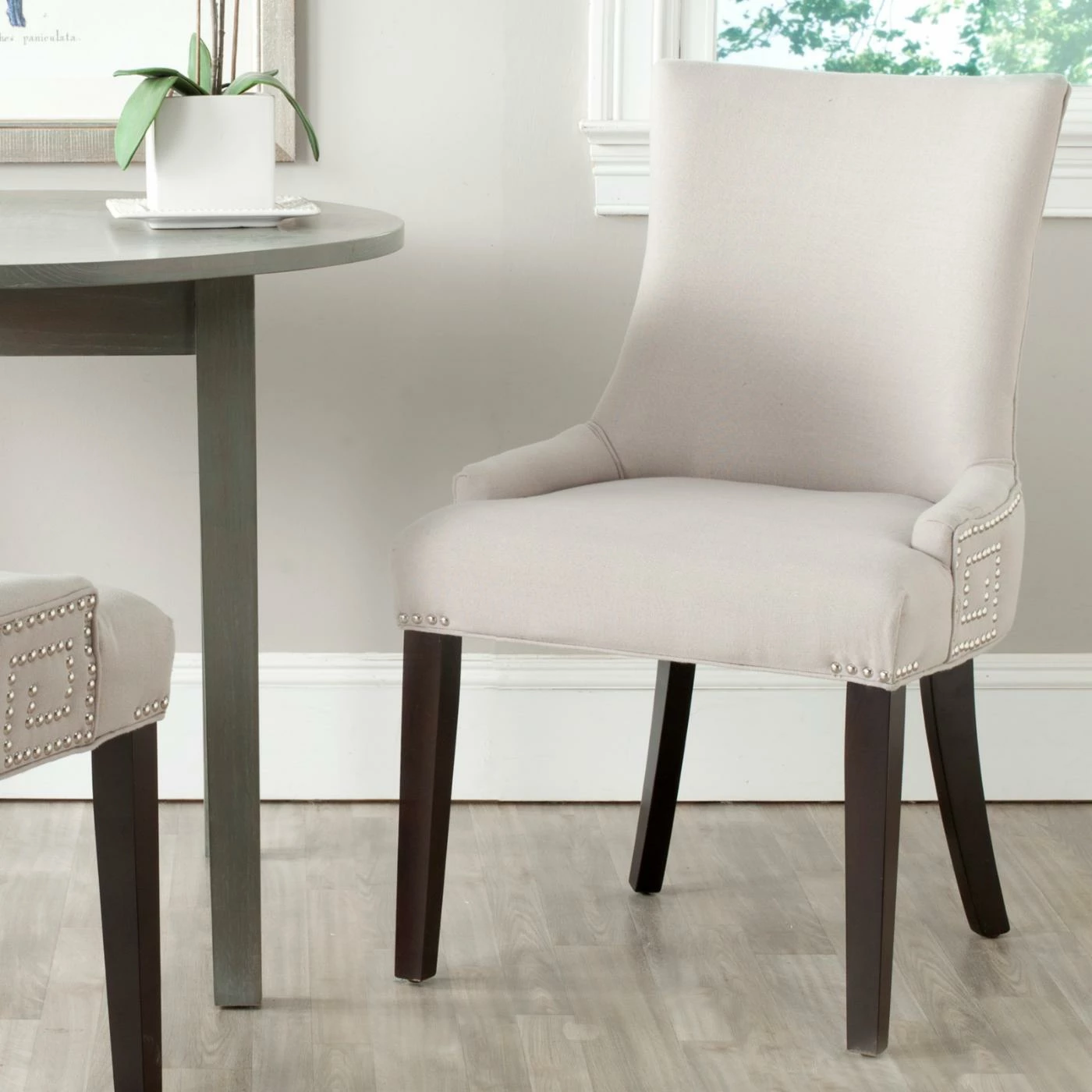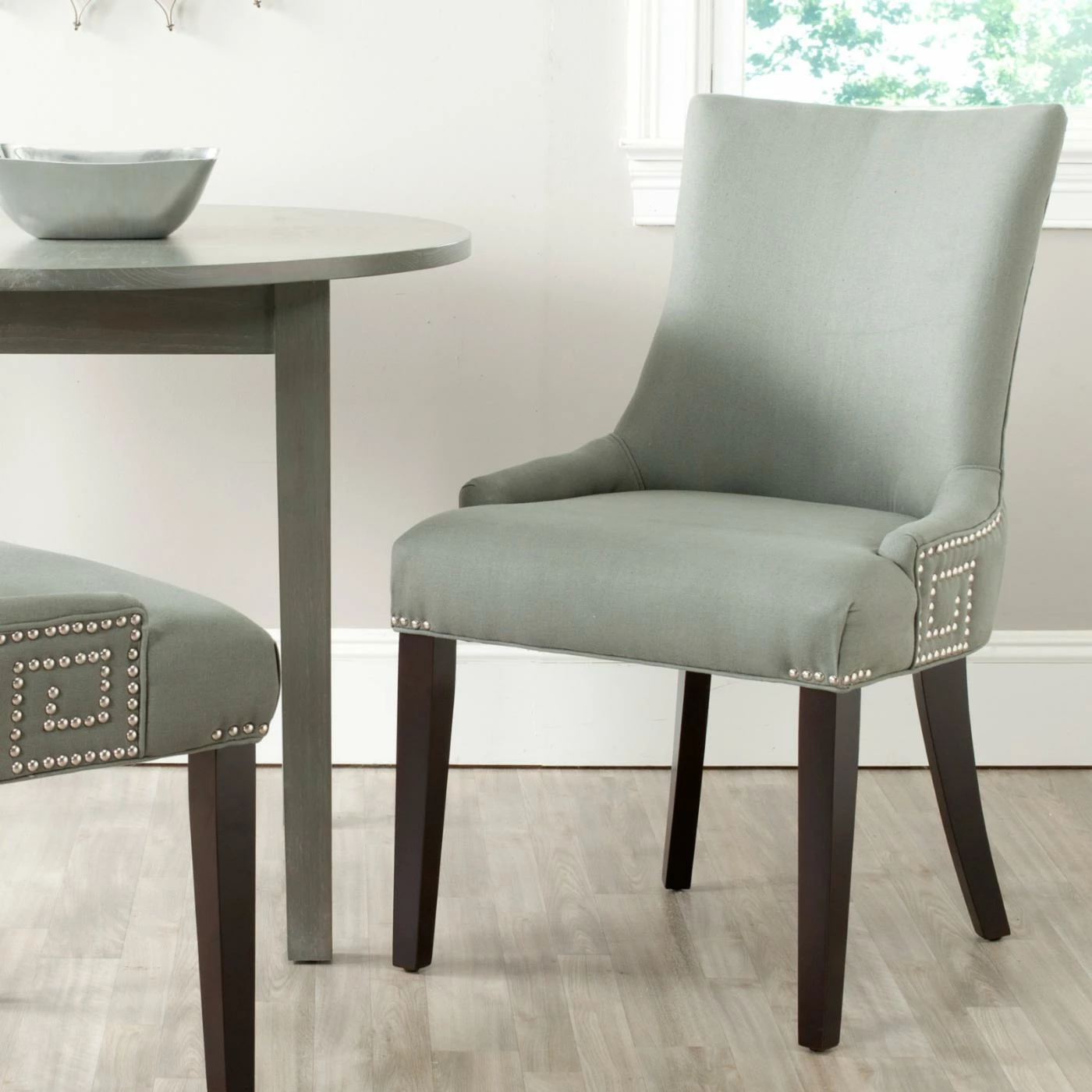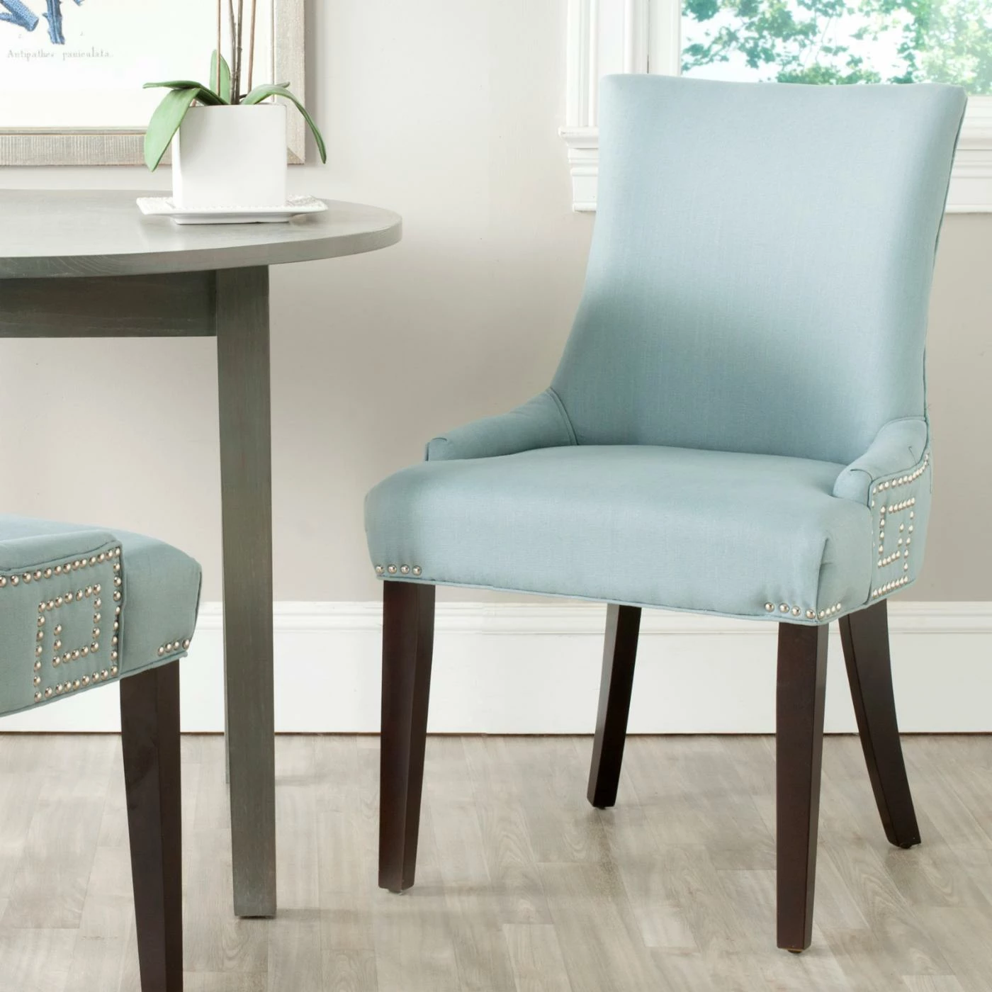Give your home a modern upgrade with the Safavieh Gretchen Side Dining Chairs – Set of 2. Its gentle slopes and gracefully curving legs create a look that is soft and inviting, while the linen fabric in your choice of color allows this chair to complement any dΓ©cor. Whether you use it as a dining or accent chair, you’ll love the unique Greek key design on the side, crafted out of silver nailhead trim. Its birchwood frame is strong and durable while the espresso finish on the legs adds warmth and sophistication to the design.