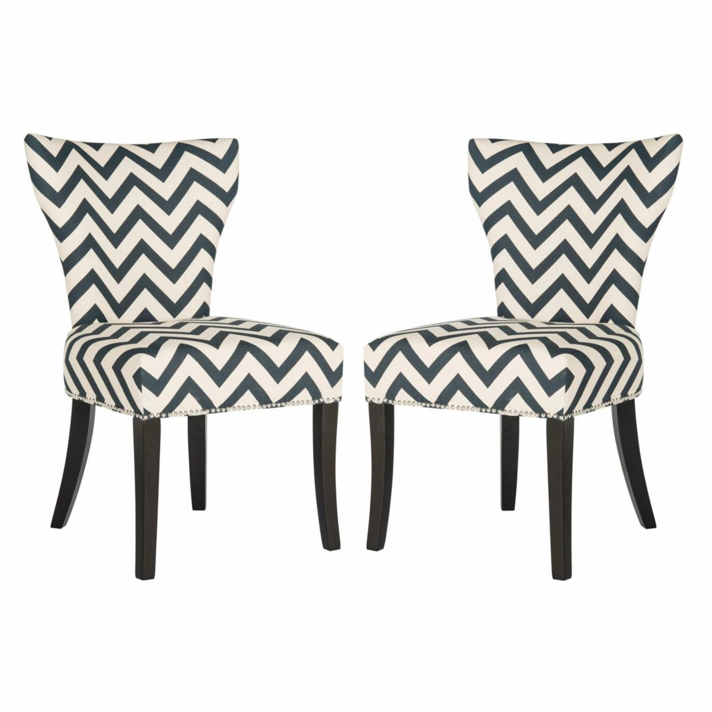 Display your love of bold patterns and modern design with the Safavieh Jappic Chevron Ring Side Dining Chairs – Set of 2. Featuring a chevron print in your choice of colors, this chair is a gorgeous addition to any room in your home. Nailhead trim shows off the curvy silhouette of the chair while espresso legs provide the perfect backdrop for the linen and cotton blend fabric. Sophisticated with a touch of fun, this chair complements almost any dΓ©cor.