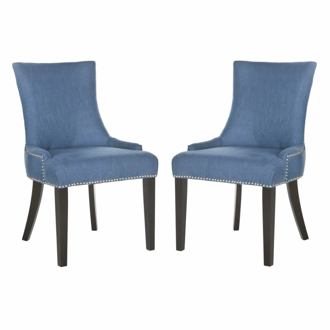 Your home will look easy and elegant with the Safavieh Lester Dining Chair With Silver Nail Heads – Set of 2. Its linen blend upholstery in your choice of color is a sophisticated backdrop to the silver nailhead trim which shows off the hourglass silhouette of the chair. Made to last with a birch wood frame and legs finished in a rich espresso, this chair is a gorgeous and modern addition to any room in your home.