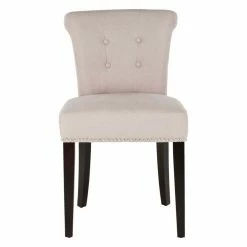The timeless Safavieh Sinclair Ring Dining Chairs – Taupe – Set of 2 is beautifully crafted with graceful curves all will fall in love with. Constructed of solid birch wood, this dining chair features an espresso finish with a soft taupe fabric seat, individual nickel nail trims, and a decorative nickel handle that is sure to match any decor. Its concave curved back and deep seat are sure to make an impression. Comes in a set of two.