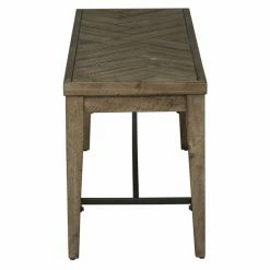 A herringbone parquet top and metal stretcher add visual intrigue to the Liberty Furniture Industries Horizons Dining Bench. Saw mark distressing and a rustic caramel finish make this sturdy wood dining bench ruggedly handsome. It offers room to seat two and brings a relaxed vibe to the dinner table.