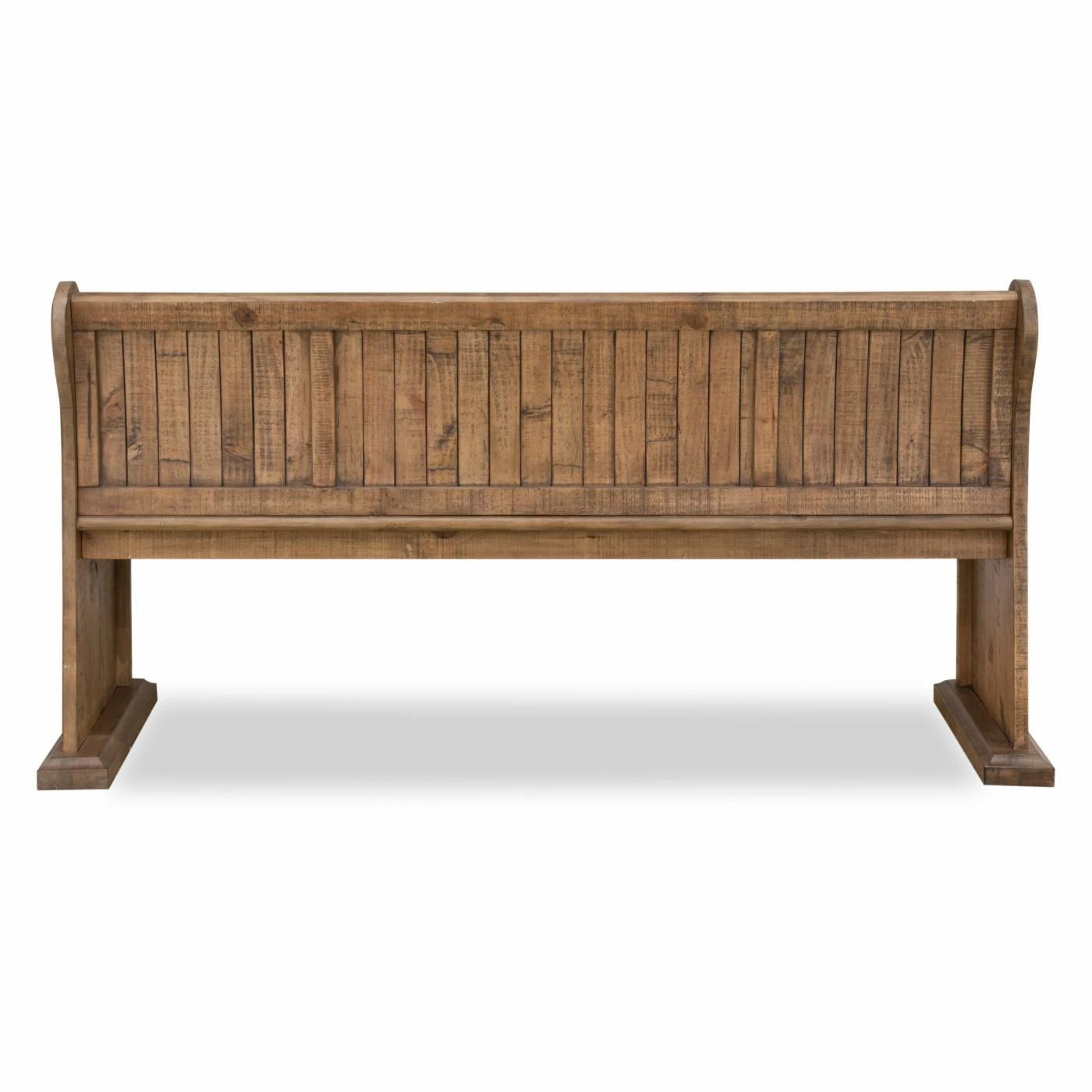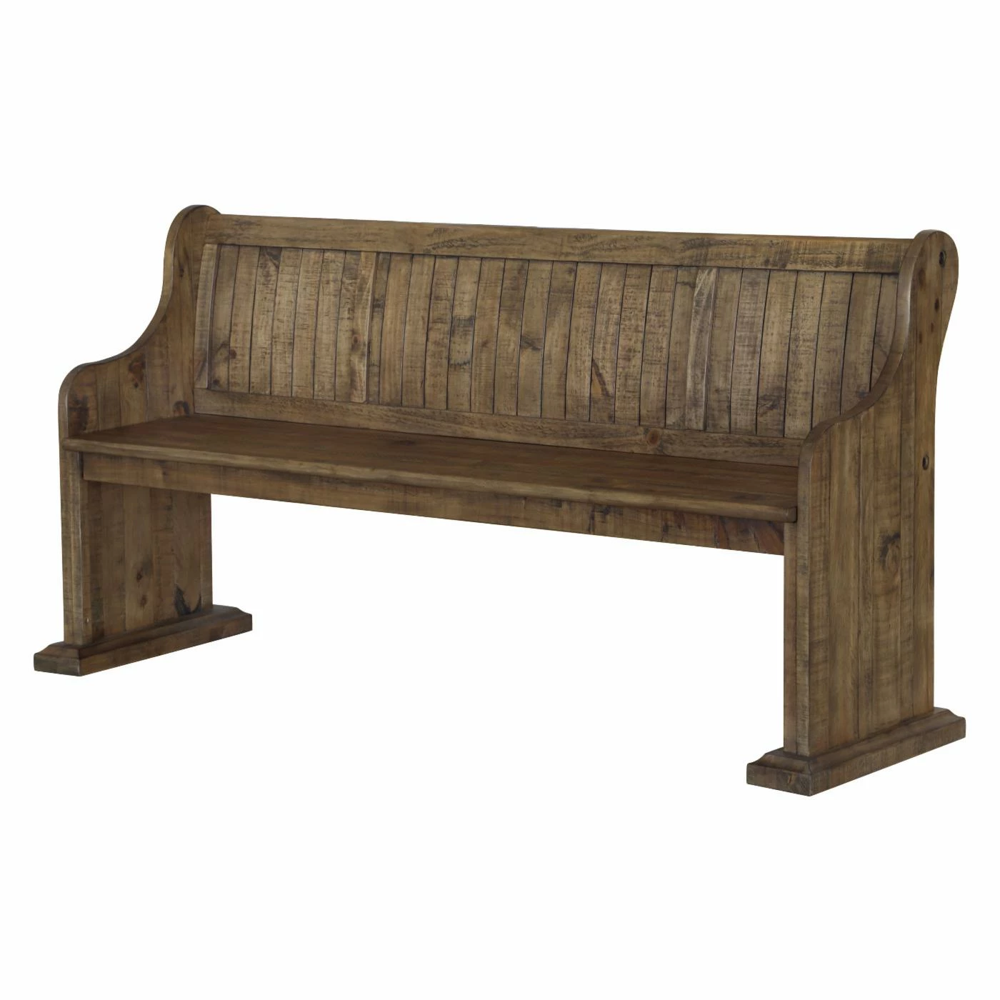 Create a unique dining room with the Magnussen Willoughby Wood Dining Bench. It offers seating for several people and brings a casual vibe. Crafted from pine solids and hardwood veneers with a weathered barley finish, it is durable for years of use. Sculpted bases, sloping armrests, and a slatted backrest give this bench a refined traditional look.