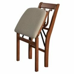 Exuding simple, classic charm and inviting look, the Meco Music Back Wood Folding Chairs with Upholstered Seat – Set of 2 – Cherry are just what you need to make your guests feel at home. Designed for years of use, these chairs are sturdily constructed of solid hardwood and sport a warm, rich cherry finish to match your setting and color scheme. The padded, upholstered seat and supportive yet stylish music-clef patterned back spell luxurious comfort, while a steel folding mechanism ensures the chairs fold easily and stow away for easy storage. Perfect for adding versatile seating, this set of two chairs will make an enduring addition to your home.