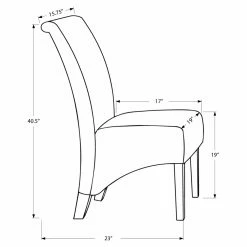 The Monarch Cheswold Espresso Vintage French Parson Dining Chairs – Set of 2 offers a modern take on classic Parson chair design. This set includes two dining chairs with wooden frames and an espresso finish. The chairs are padded and upholstered in vintage French fabric that adds an European flair to your dining space. The gently curved backs and extended fabric seat add modernity.