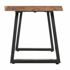 The Primo International Kiel Dining Bench combines rustic and industrial elements to create a chic, backless bench. The iron legs are in a black finish, and the legs are in a trapezoid shape, adding a contemporary touch to the bench’s silhouette. The seat itself is made of eco-friendly acacia wood in a natural finish with a live edge. Thanks to the live edge, each bench is unique, as the live edge showcases the natural imperfections in the wood. Pair this piece with the Primo International Kiel Dining Table (sold separately on Hayneedle.com) to create a cohesive look for your dining room. You can also use the bench as additional seating in your living room, or place it at the end of your bed. Some assembly required.