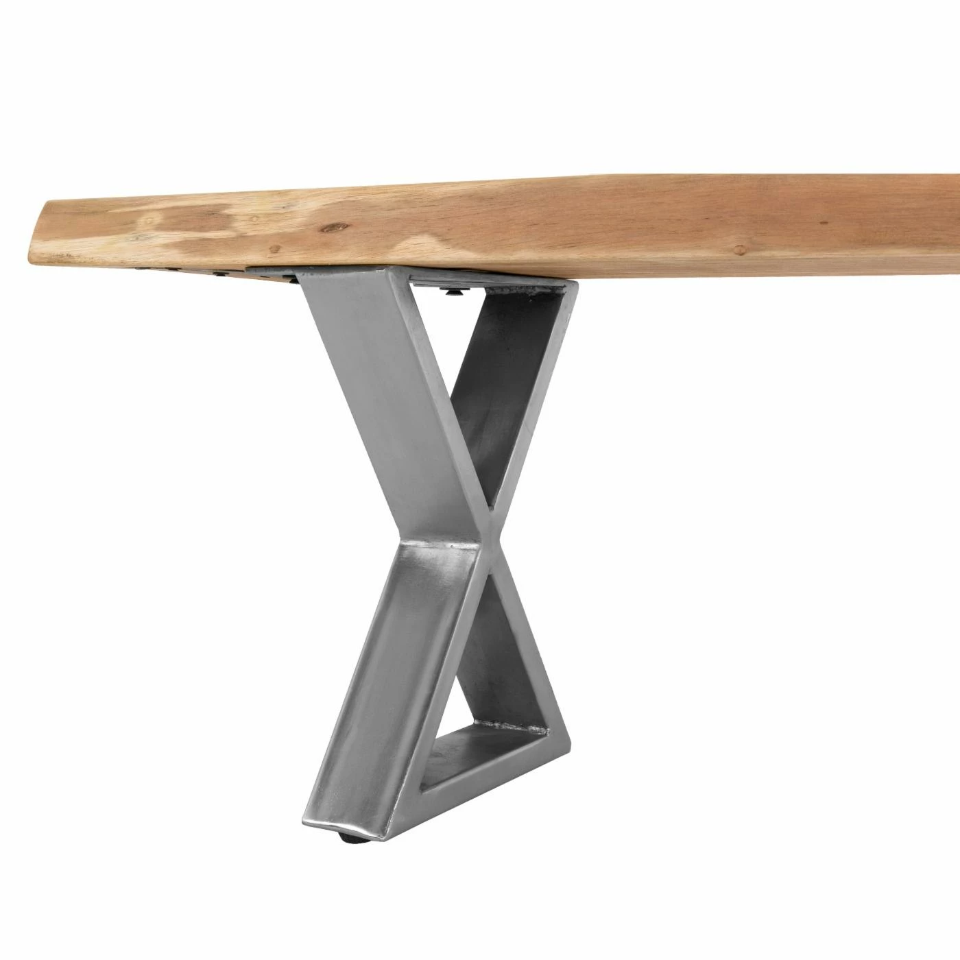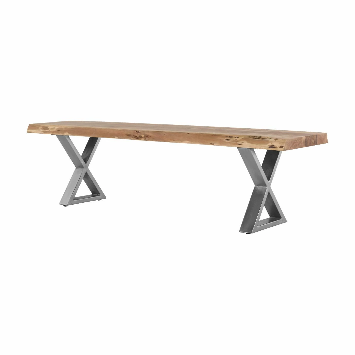 Add a touch of modern farmhouse style to your dining room with the Primo International Loomie Dining Bench. This backless bench combines industrial and rustic accents to create a truly unique piece. The X-shaped base is made of iron in a shiny silver finish, which contrasts nicely with the bench seat. Made of eco-friendly acacia wood in a natural finish, the bench seat has a live edge, which highlights the naturally occurring patterns in the wood. Pair this item with the Primo International Loomie Dining Table (sold separately on Hayneedle.com) to create a cohesive look. Some assembly required.