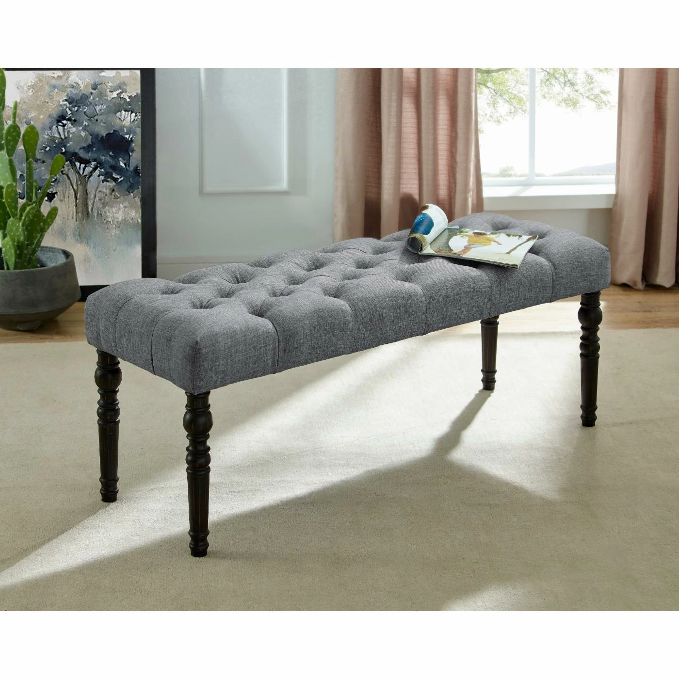 Create casual, elegant seating at your dinner table with the Roundhill Furniture Leviton Fabric Tufted Dining Bench. Its glorious design includes a handsome solid wood frame with turned legs. The comfortably padded top on this dining bench is upholstered in solid color fabric in your choice of color and button tufted.