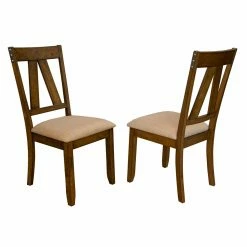 Elevate your dining room style with the A-America Eastwood Geometric Back Side Dining Chair – Set of 2. Designed with artisan-worthy craftsmanship, these dining chairs boast solid rubberwood construction complemented by a rich tobacco finish. Their upholstered foam seat cushions ensure lasting comfort for dinner guests.