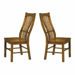 An ergonomically curved, slat style back gives the A-America Laurelhurst Slat Back Dining Side Chair – Set of 2 classic mission style and maximum comfort. Seat guests in style! This set includes two side chairs made of solid oak in select finish options.