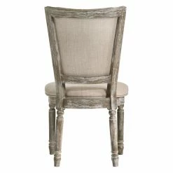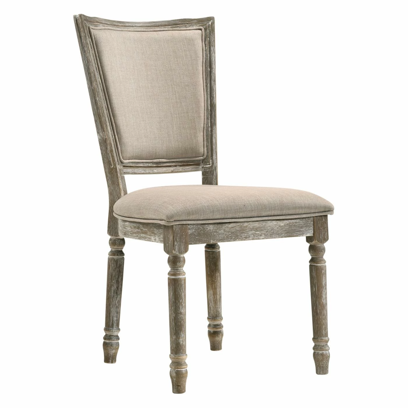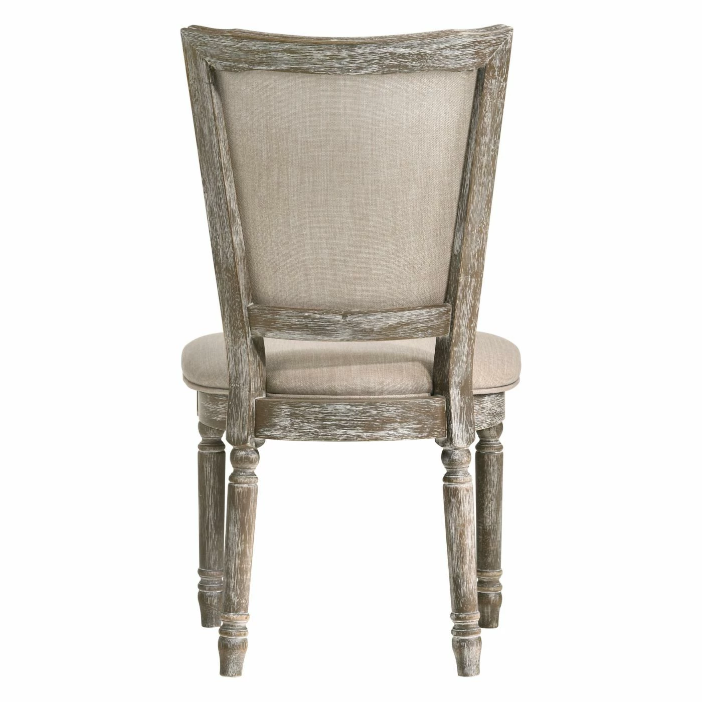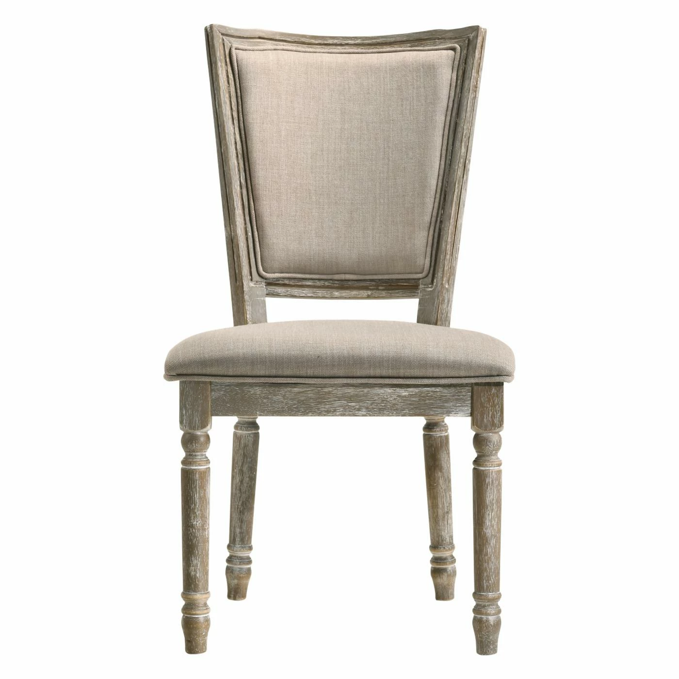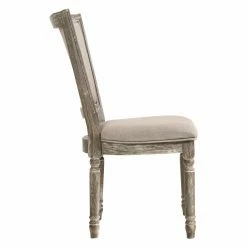 Enjoy relaxed cottage-style complement to your dining table with the Acme Furniture Gabrian Dining Side Chair – Set of 2. Two matching side chairs are included in this set. Each chair comes crafted from solid rubberwood with turned leg detailing. The backrests and seats are stuffed with dense, soft foam, upholstered in stain-resistant beige fabric with welted edges. The wood is finished in gray with a weathered whitewash finish.