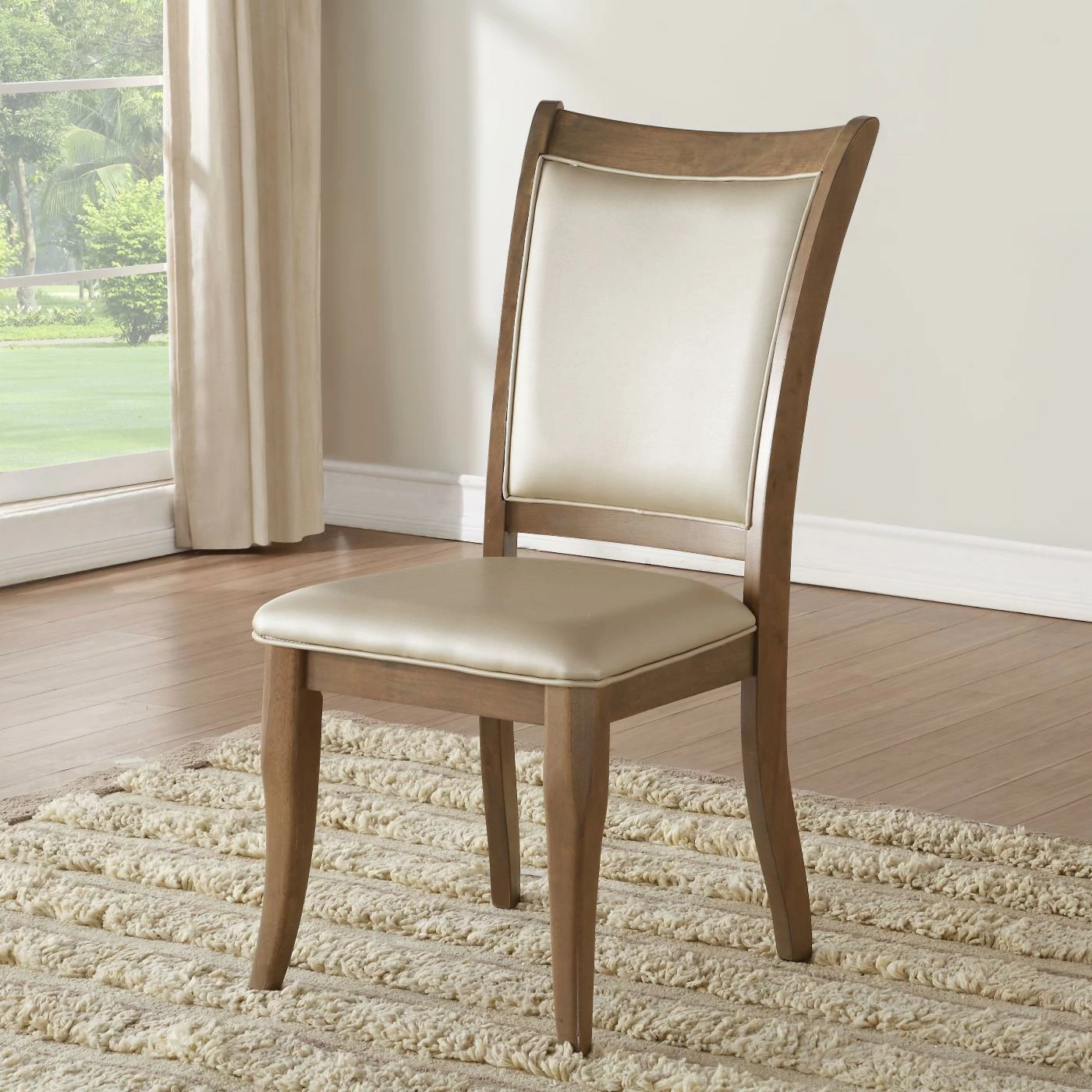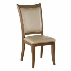 The Acme Furniture Harald Dining Side Chair – Set of 2 blends classic and modern together to create a comfortable, stylish chair. You’ll love this set of two dining chairs accented in faux leather upholstery in a shimmery beige color. The sturdy wood frame and legs are enhanced in an oak finish to bring the pair a timeless, rustic aesthetic.