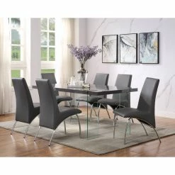 Anchor your dining space in sleek with the Acme Furniture Noland Dining Side Chair – Set of 2. Featuring a fully upholstered faux leather seat and a curved leg design, this set creates sophistication that instantly modernizes your home. With the contemporary motif of the dining table (sold seperately), it will be the center of attention in your dining area.