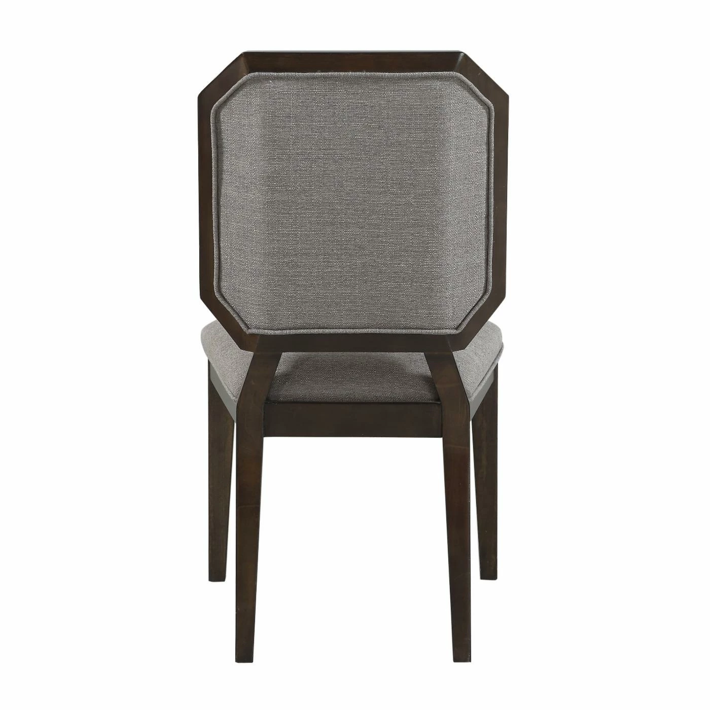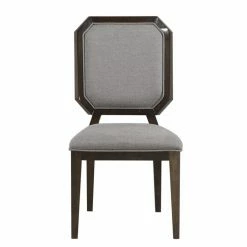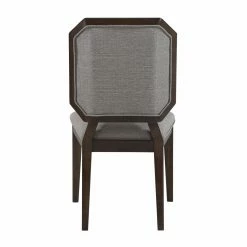 Blending a modern shape with rustic influence, the Acme Furniture Selma Dining Side Chair – Set of 2 adds a look of distinction to your dining space. This set of two dining chairs boasts a wood frame and tapered legs all completed in a warm tobacco brown finish. Gray fabric upholstery on the padded back and seat bring it a modern vibe along with its clipped corners for a dose of contemporary style.
