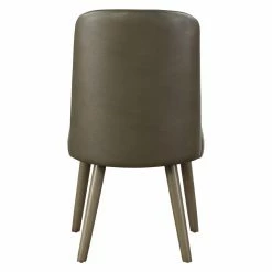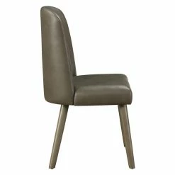 Expand your dining room seating space in an instant with the Acme Furniture Waylon Faux Leather Dining Side Chair – Set of 2. Two matching chairs are included in this set. Solid acacia wood constructs the frames, supported by splayed, mid-century-style tapered legs with a gray oak finish. The curved, armless backs and deep seats are stuffed with foam before being upholstered in brown polyurethane faux-leather.