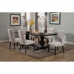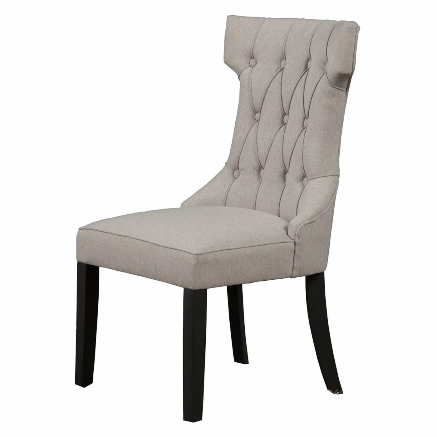 Create a dining setting that emanates elegance with the Alpine Furniture Manchester Upholstered Side Chair – Set of 2. Upholstered in ultra-smooth, light gray fabric with a button-tufted back, these armless side chairs flaunt a contemporary, throne-inspired look, ideal for delectable dinner parties or weekend brunches. With sleek-lined legs finished in black, this sophisticated chair set coordinates with the Manchester Dining Table to complete the scene.