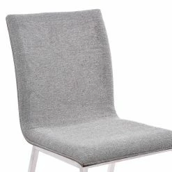 Mid-century modern, here we come! The Armen Living Crystal Fabric Seat Dining Chair – Set of 2 offers a distinctive rendition that’s sure to please. Walnut-veneered backrests are punctuated with cut-outs to create a sense of sophistication. Each armless chair has gray upholstery and sleek stainless steel legs.