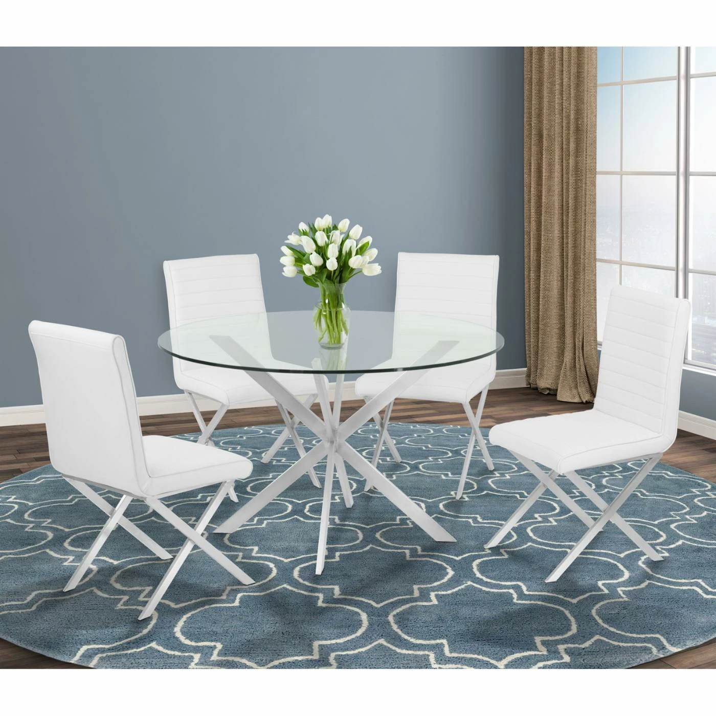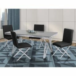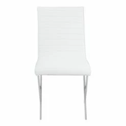 Simple and elegant, the Armen Living Tempe Contemporary Dining Side Chair – Set of 2 instantly updates your the style of your space. Crossed legs, straight, plush backs, and faux leather seats create a look of modern sophistication youβll love. The brushed stainless steel frames and legs are strong and durable, making these chairs great for families with and without children. Select from the available colors to find the perfect look for your home.