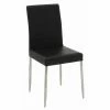 Give your dining table a modern update by surrounding it with the Benzara Faux Leather Dining Chair with Chrome Legs – Set of 4. This armless chair features a contoured back for lasting comfort. The high-shine metal legs provide the right combination of support and bounce.