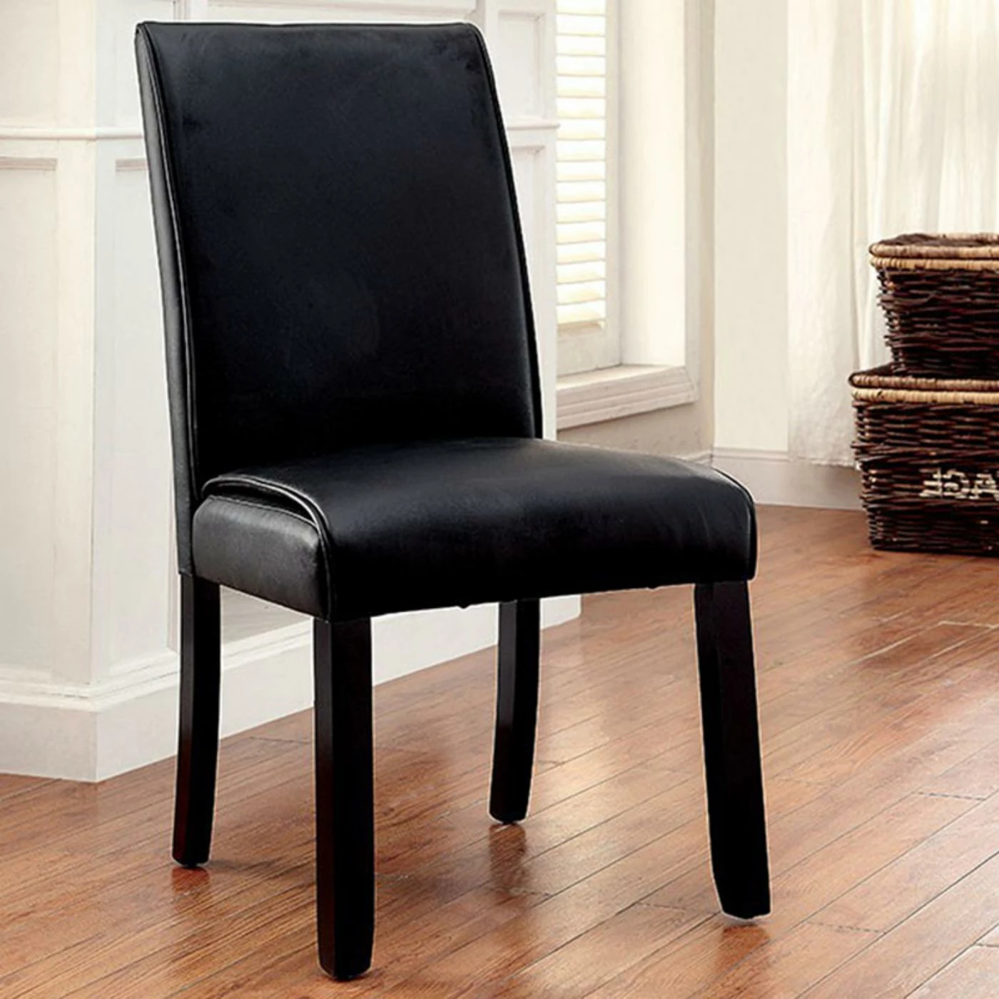 Treat everyone in your home to the supreme comfort of the Benzara Grandstone I Faux Leather Parsons Dining Chair – Set of 2. This sleek parsons chair features faux leather upholstery surrounding the back and seat. The rich finish continues to the solid wood legs supporting this armless dining chair.